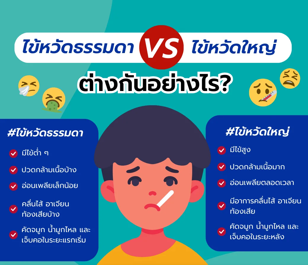 ขณะที่ “ไข้หวัด” มักมีอาการไม่รุนแรง ไข้ไม่สูง มีน้ำมูก ไอเล็กน้อย และสามารถหายได้เอง อย่างไรก็ตาม หากมีอาการไข้สูง ไอ เจ็บคอ ปวดเมื่อยมาก หรืออาการไม่ดีขึ้นภายใน 2 – 3 วัน ควรรีบพบแพทย์ เพื่อรับการวินิจฉัยและรักษาที่ถูกต้อง