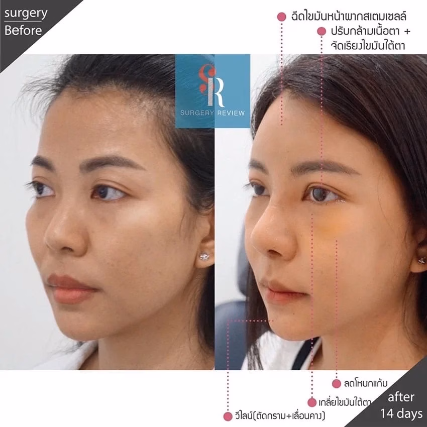 -ฉีดไขมันสเตมเซลล์ที่บริเวณหน้าผาก ใต้ตา และร่องแก้มด้านขวา