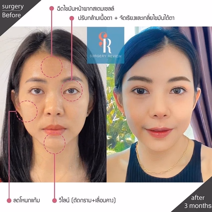 -ผ่าตัดเพื่อปรับโครงหน้า 3 จุด ได้แก่ กราม คางและโหนกแก้ม