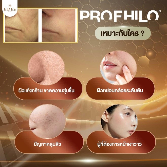 อธิบายให้เข้าใจง่ายๆว่า Profhilo เป็นตัวแก้ปัญหาผิวด้านบน On top ผิวที่ไม่เรียบ ไม่ฟู ผิวยับ หลุมสิว ริ้วรอย ได้เป็นอย่างดี ให้ผลลัพธ์ เรื่องของ Skin Quality ได้ดี ช่วยให้ผิวชุ่มชื้นแบบจัดเต็ม สามารถฉีดที่ผิวชั้นตื้นได้ (ซึ่ง Sculptra, Radiesseทำไม่ได้ เพราะสองตัวนี้มีหน้าที่กระตุ้นผิวชั้นลึกโดยตรง เด่นที่งานผิวชั้นลึกและโครงสร้างผิวได้มากกว่า สำหรับผู้ที่มีปัญหาผิวที่มากกว่า หรือ ผู้ที่มีอายุมากกว่า) เพราะฉะนั้นถ้าผสมผสานการฉีด Sculptra หรือ Radiesse ตามด้วย Profhilo ผิวจะสวยฉ่ำแบบขั้นสุด