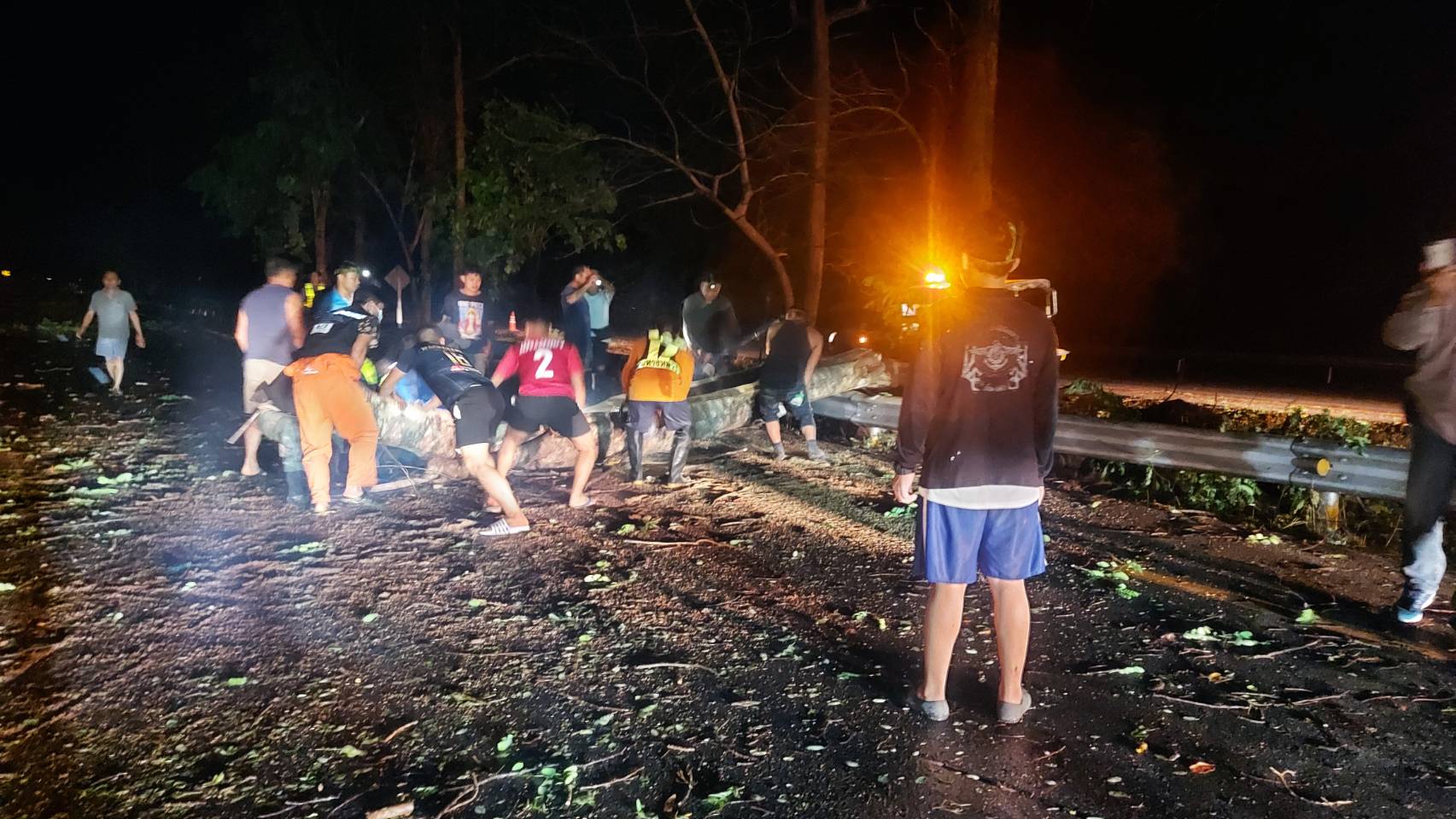 นอกจากนี้ ยังเกิดพายุพัดต้นไม้ใหญ่ล้มขวางถนนพหลโยธิน ลำปาง-ตาก กม.ที่ 639-640 ฝั่งขาเข้าตัวอำเภอสบปราบ บริเวณเขต บ้านแม่เตี๊ยะ ต.แม่ถอด อ.เถิน ซึ่งเป็นถนนสายหลักทำให้รถติดยาวเหยียด เจ้าหน้าที่ได้เร่งดำเนินการตัดและเคลื่อนย้ายต้นไม้ออก ใช้เวลาประมาณครึ่งชั่วโมงจึงเปิดเส้นทางได้ปกติ ส่วนความเสียหายอื่นๆอยู่ระหว่างการสำรวจ
