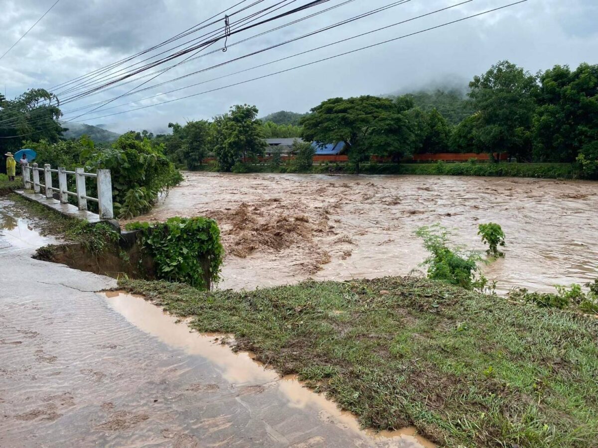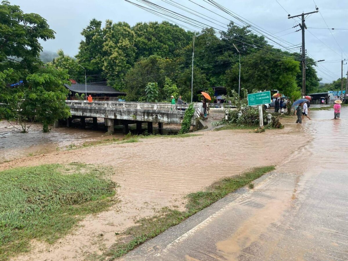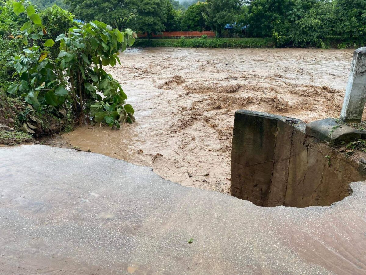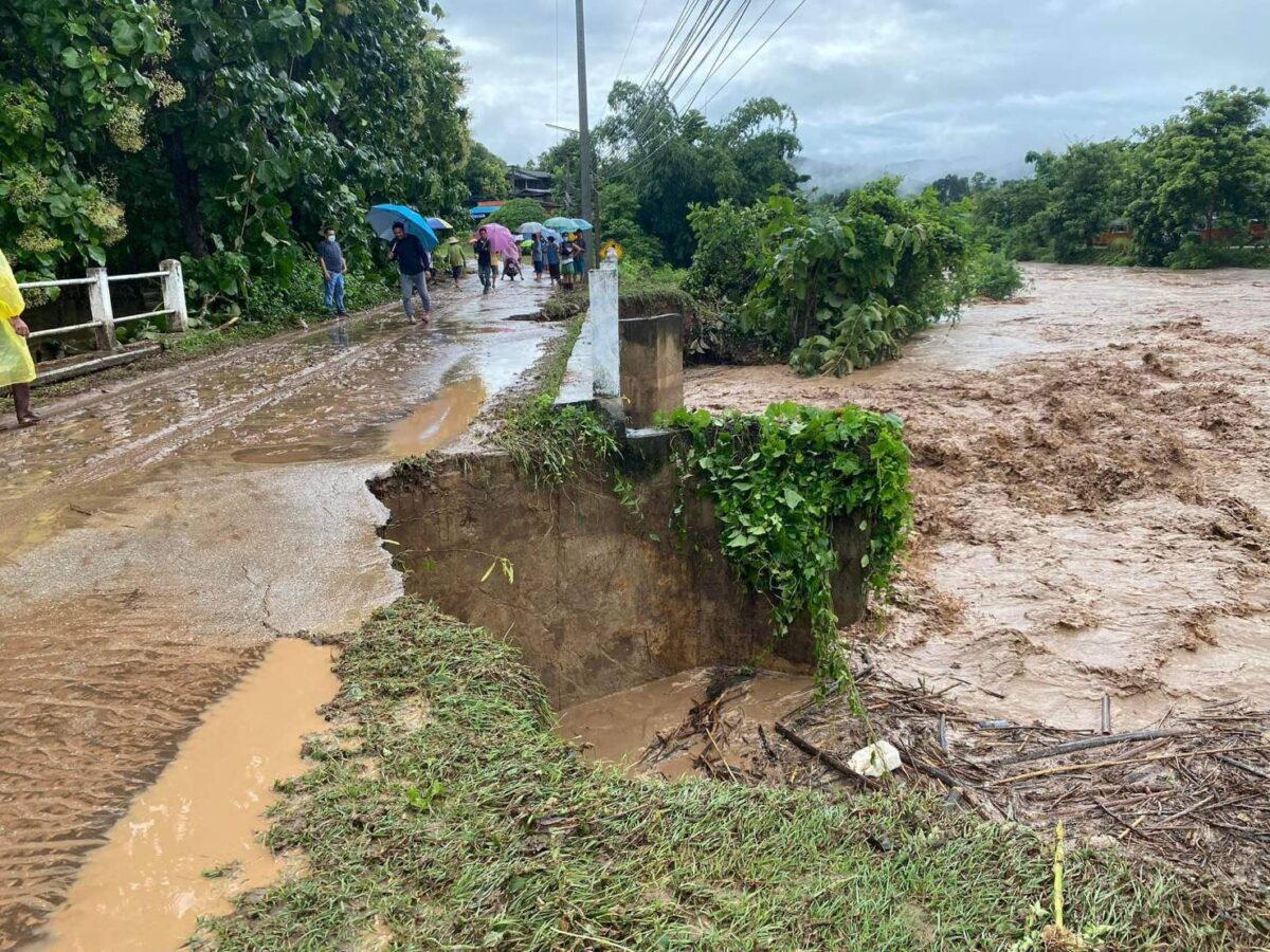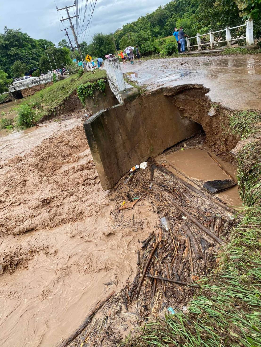 นายอำเภอแม่พริก รุดตรวจสอบคอสะพานทรุด บ้านห้วยขี้นก-แพะดอกเข็ม หลังมีฝนตกหนักในพื้นที่