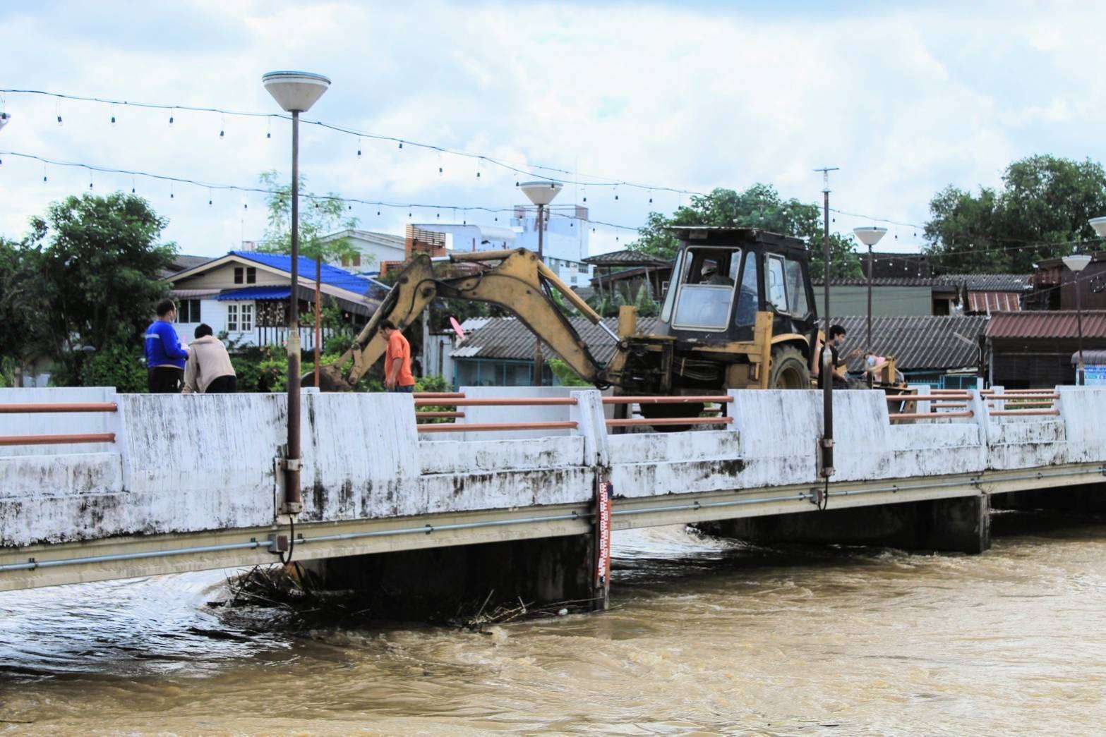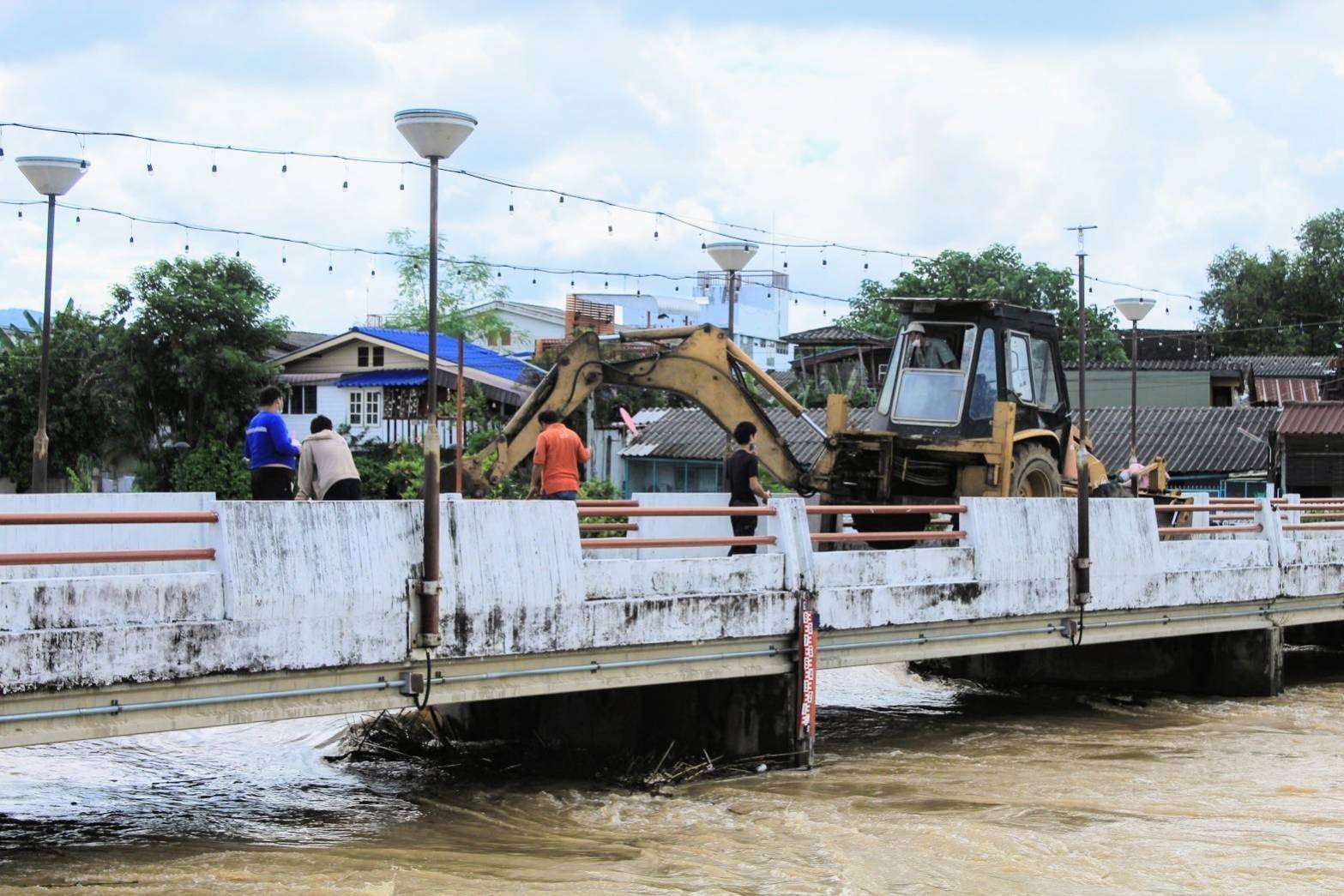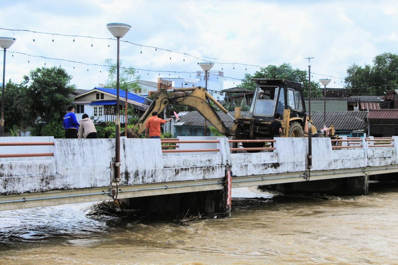 เทศบาลนครลำปาง นำรถเครนมาชักลากต้นตะเคียนติดตอม้อสะพาน 200 ปี และกิ่งไม้ต้นไม้ ให้การระบายน้ำได้ดี และป้องกันอันตรายแก่ผู้สัญจรผ่านไปมา