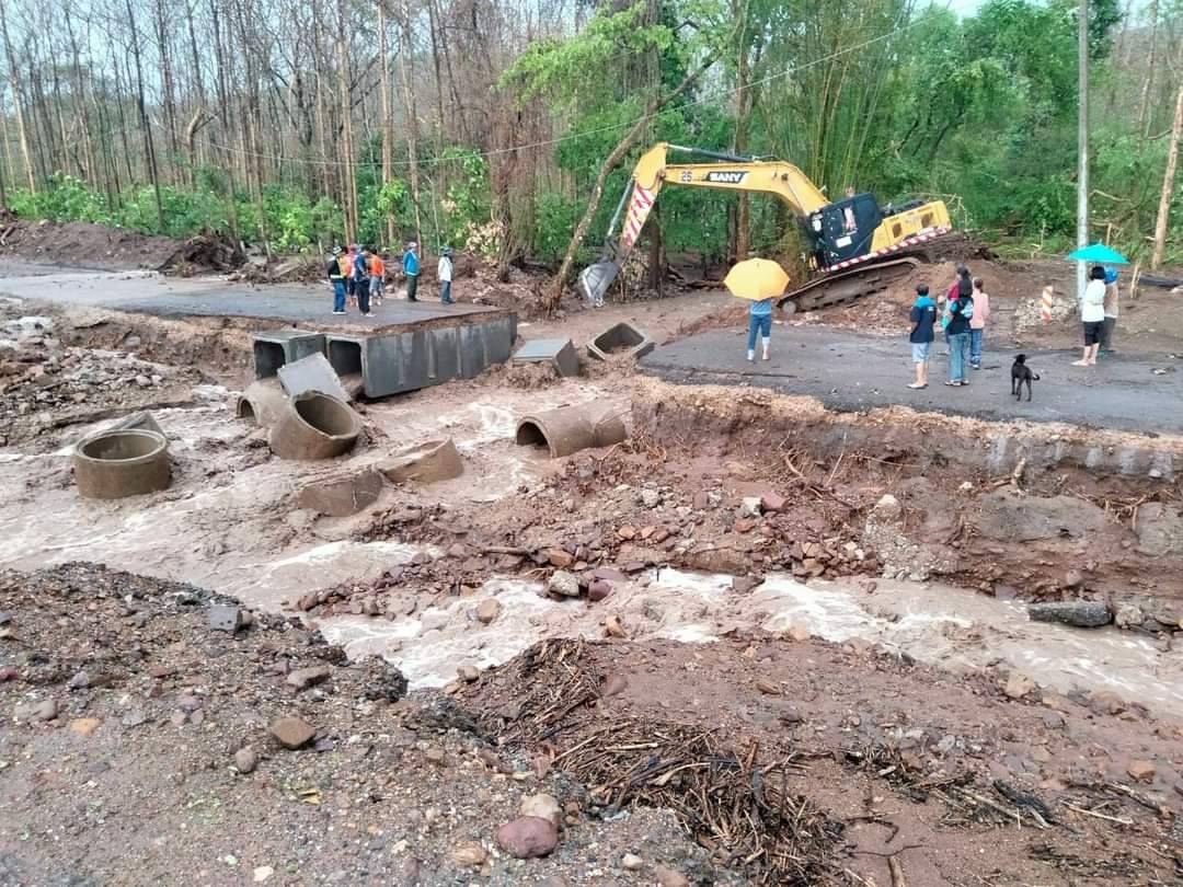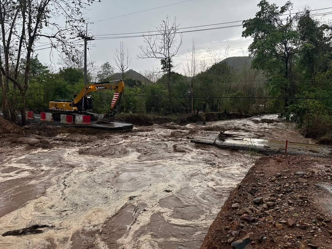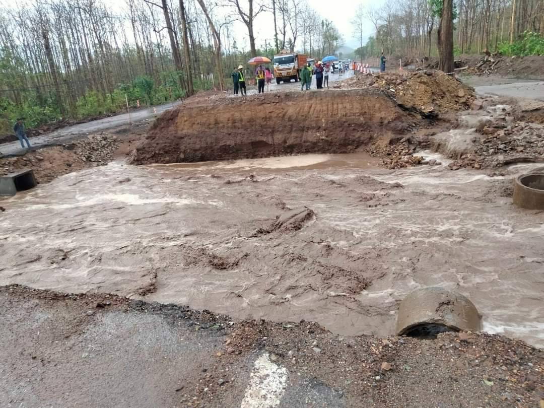 ขอรายงานสถานการณ์ ฝนตกหนักน้ำป่าไหลหลากกัดเซาะทางขาด ทางหลวงหมายเลข 1124 ตอนควบคุม 0100 ตอน ท่าผา – ปางกุ่ม กม. 5+350 ทิศทาง: ซ้ายทาง – ขวาทาง