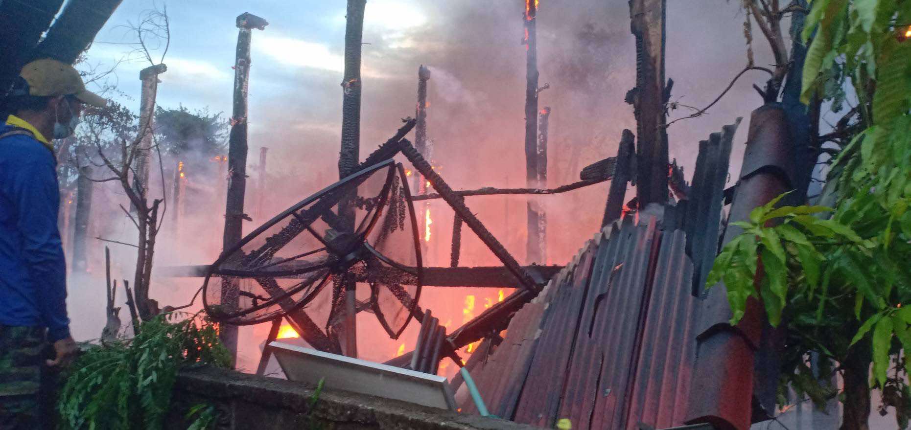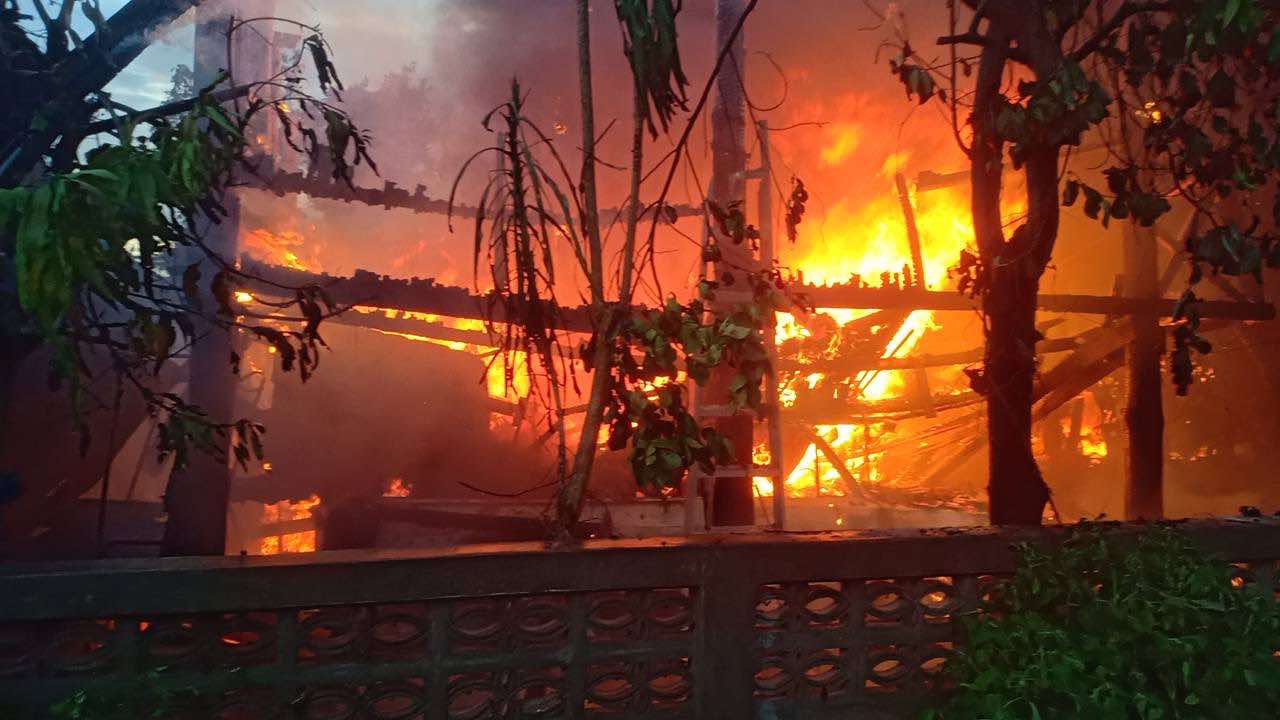 เกิดไฟไหม้บ้านลุกลาม 2 หลังติดกัน เพื่อนบ้านช่วยตากับยายออกจากบ้าน เห็นสภาพบ้านแทบทรุด ตานั่งร่ำไห้มองบ้านไฟไหม้วอดไปต่อหน้า
