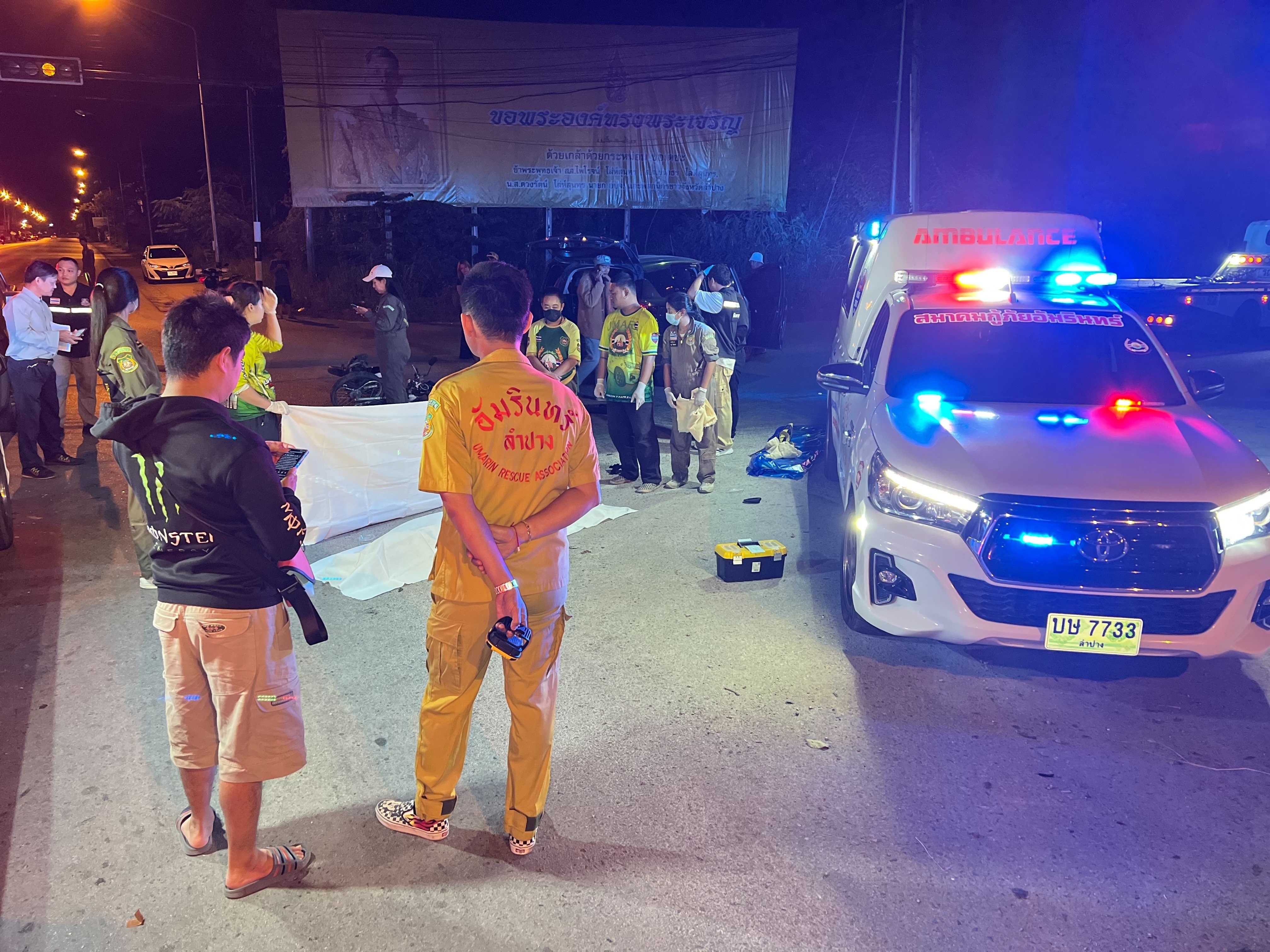 เมื่อเวลาประมาณ 22.30 น. ของวันที่ 29 พ.ย. 67 พ.ต.ท.กนก วังใจฟู สว(สอบสวน) สภ.เขลางค์นคร ได้รับแจ้งว่าเกิดอุบัติเหตุ รถเก๋งชนกับรถจักรยานยนต์ มีผู้เสียชีวิต บริเวณแยกกลางแยกไฟแดง เฮือนสายคำ ต.พระบาท อ.เมืองลำปาง จ.ลำปาง จึงประสาน แพทย์นิติเวช รพ.ลำปาง และเจ้าหน้าที่กู้ภัยอัมรินทร์ลำปาง ร่วมตรวจสอบ