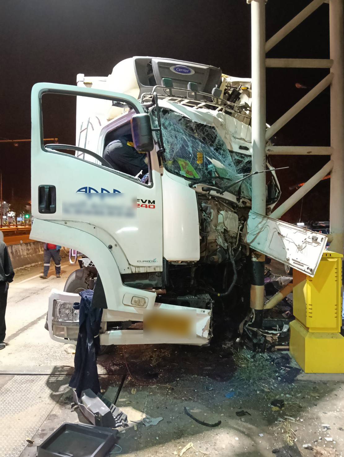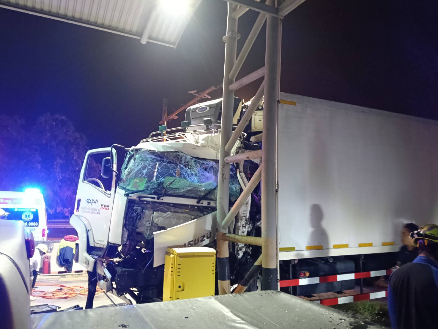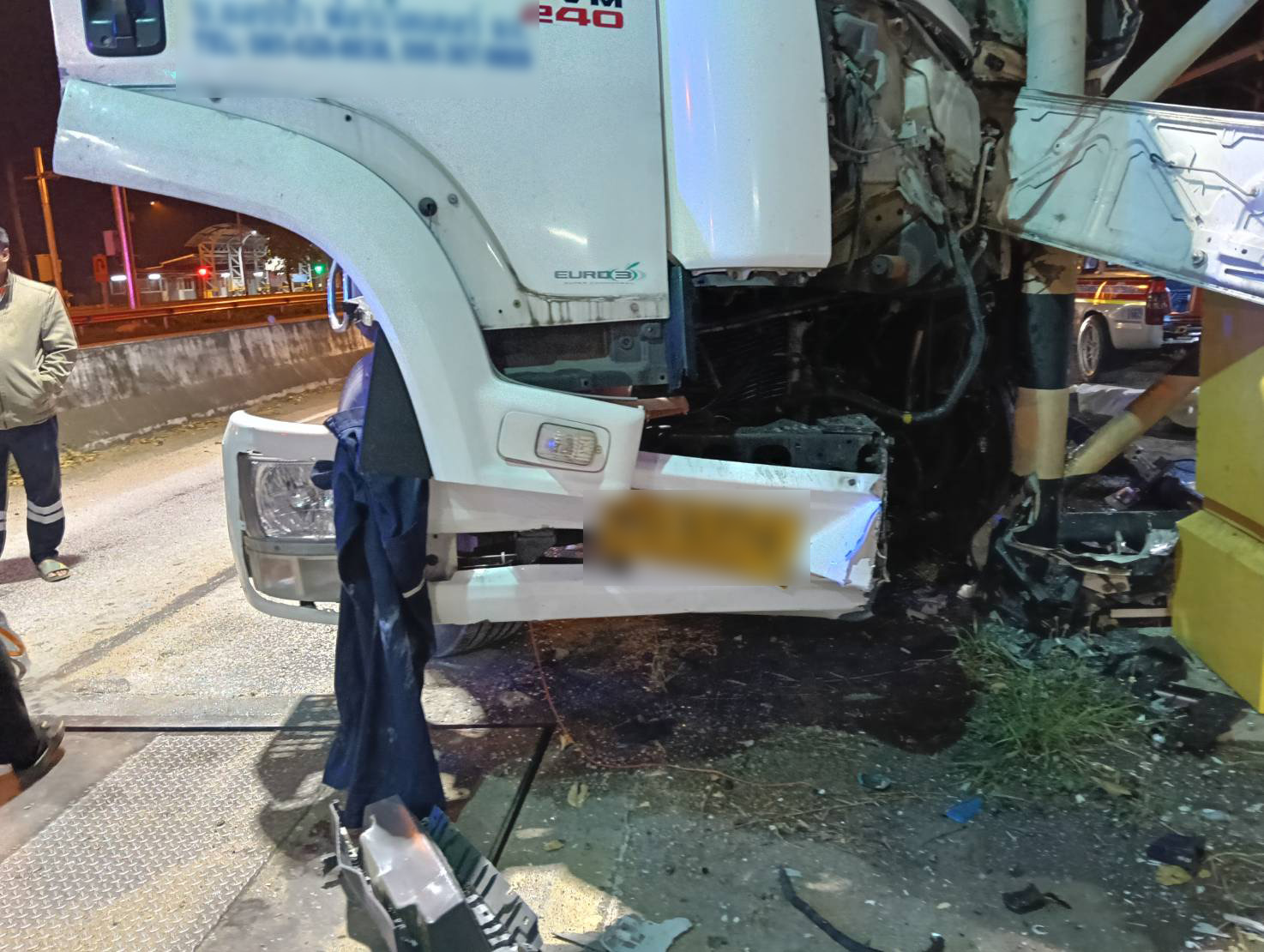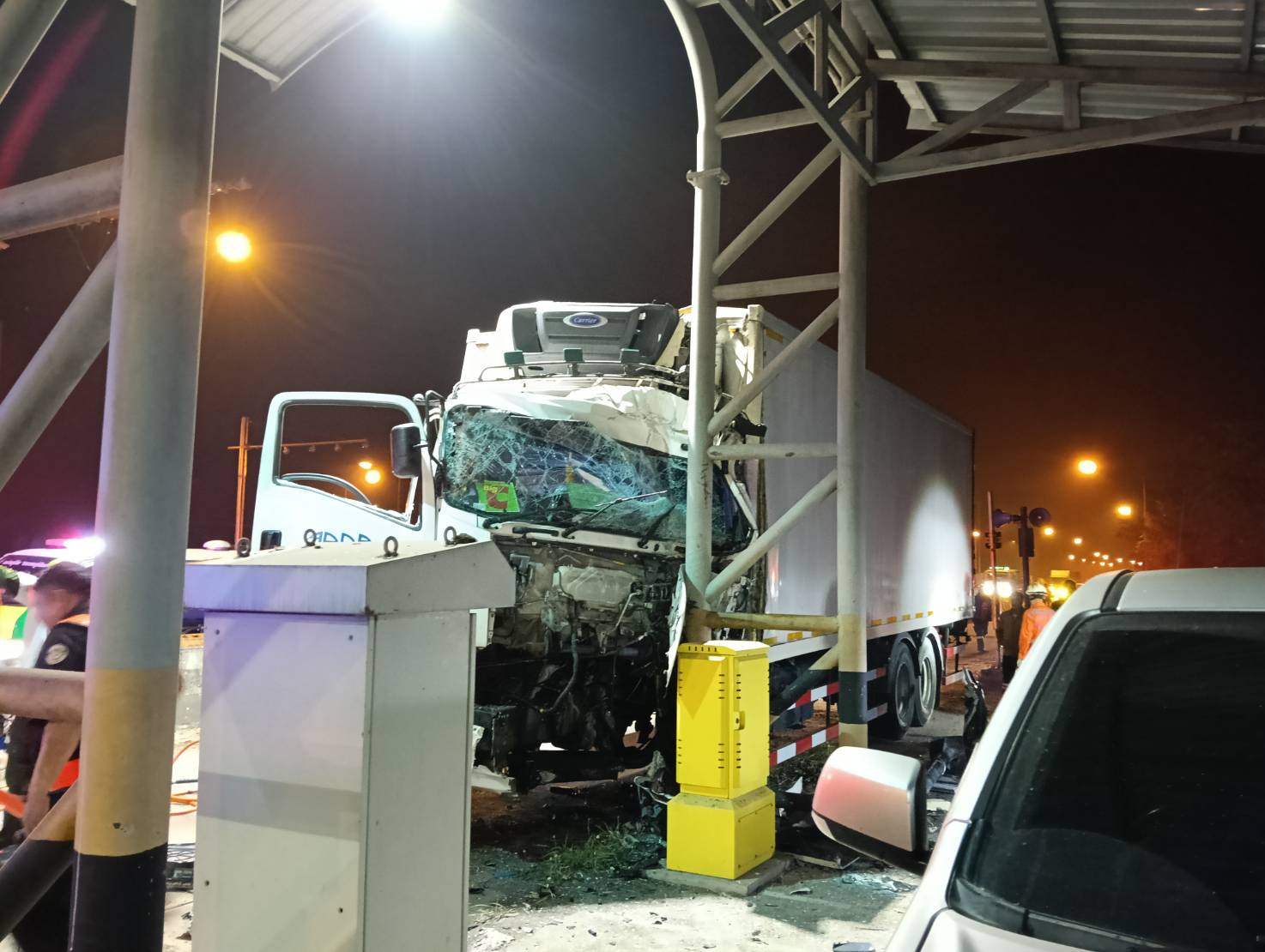 จากการตรวจสอบของเจ้าหน้าที่ตำรวจ พบรถยนต์บรรทุก 10 ล้อ ยี่ห้อ อีซูซุ สีขาว ทะเบียนกรุงเทพมหานคร ในสภาพเฉี่ยวชนกับเสาโครงหลังคา บริเวณด่านชั่งน้ำหนักรถ โดยพบมีคนเสียชีวิต ซึ่งเป็นคนโดยสารด้านหน้ารถ ติดอยู่ภายในรถ สอบสวนต่อมาทราบว่าชื่อ นางสาวบังอร อายุ 43 ปี ราษฎร หมู่ที่ 3 ต.นาโพธิ์ อ.เมือง จ.ร้อยเอ็ด โดยมีคนขับรถชื่อนายบุญมี อายุ 53 ปี ราษฎรบ้านหมู่ที่ 10 แขวงกระทุ่งราย เขตหนองจอก กรุงเทพมหานคร