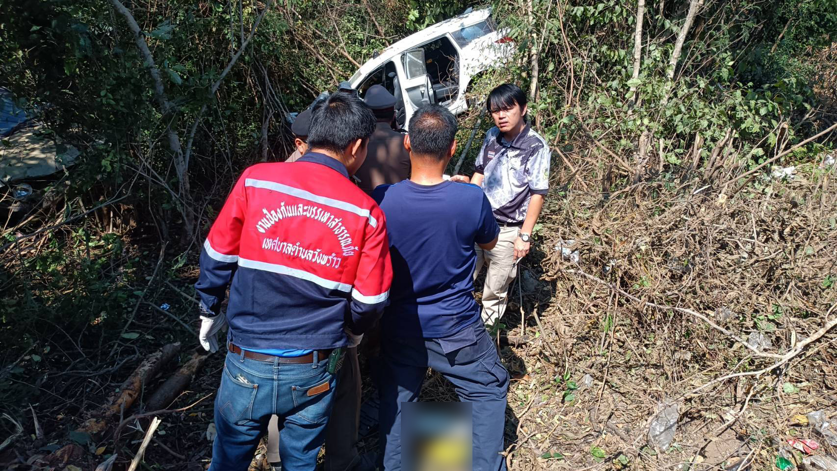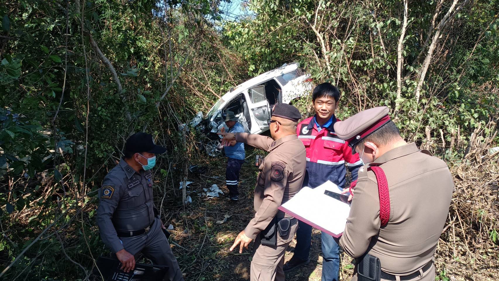 โดยเบื้องต้นโชว์เฟอร์แท็กซี่แวน เล่าว่า ตนรับจ้างเหมารถมาจากกรุงเทพฯ มุ่งหน้าไป จ.เชียงราย เมื่อมาถึงที่เกิดเหตุ รถยนต์กระบะคู่กรณีที่บรรทุกญาติมาหลายคน ได้ขับขวางกลางทาง ทำให้หลบไม่ทันได้พุ่งเข้าชนอย่างจัง แล้วไถลลงป่าข้างถนนทั้งสองคัน จนมีผู้ได้รับบาดเจ็บดังกล่าว