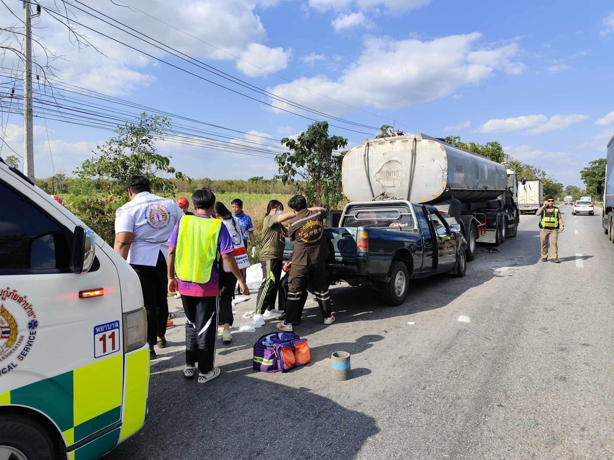 ในที่เกิดเหตุ พบรถยนต์กระบะแค๊ป พุ่งชนอัดท้ายรถบรรทุกพ่วง 18 ล้อ โดยภายในรถพบว่ามีผู้ติดอยู่ภายในจำนวน 4 ราย เจ้าหน้าที่กู้ภัยได้เร่งนำเครื่องตัดถ่างเข้าให้การช่วยเหลืองัดนำตัวทั้งหมดออกมากจากรถ ปรากฏว่า มีผู้เสียชีวิต 2 ราย และบาดเจ็บสาหัส 2 ราย จึงปฐมพยาบาลผู้บาดเจ็บและนำส่งรักษาที่ รพ.สบปราบอย่างเร่งด่วน ส่วนผู้เสียชีวิตได้ประสาน แพทย์นิติเวช รพ.สบปราบ ร่วมชันสูตรเบื้องต้นที่จุดเกิดเหตุ