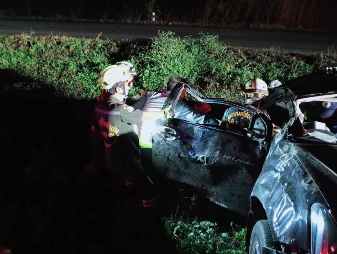 เมื่อเวลา 03.14 น. วันที่ 24 ก.พ.68 เจ้าหน้าที่ตำรวจ สภ.เถิน ได้รับแจ้งว่าเกิดอุบัติเหตุรถยนต์กระบะเสียหลักพลิกคว่ำ บริเวณ กม.ที่ 634-635 ขาขึ้น ก่อนถึงโรงไฟฟ้าชีวมวล ต.แม่ถอด อ.เถิน จ.ลำปาง มีผู้บาดเจ็บหลายรายติดภายในรถ หลังรับแจ้งจึงประสานเจ้าหน้าที่กู้ภัยในพื้นที่ กู้ภัย อบต.แม่ถอด สมาคมกู้ภัยลำปาง จุดเถิน จุดสบปราบ กู้ภัยออมบุญเถิน ร่วมให้การช่วยเหลืออย่างเร่งด่วน