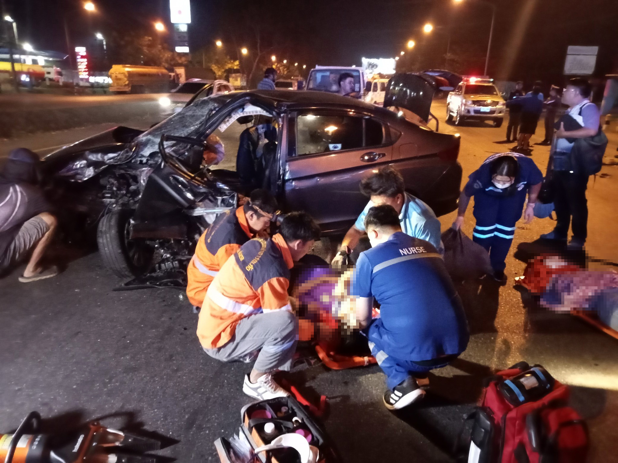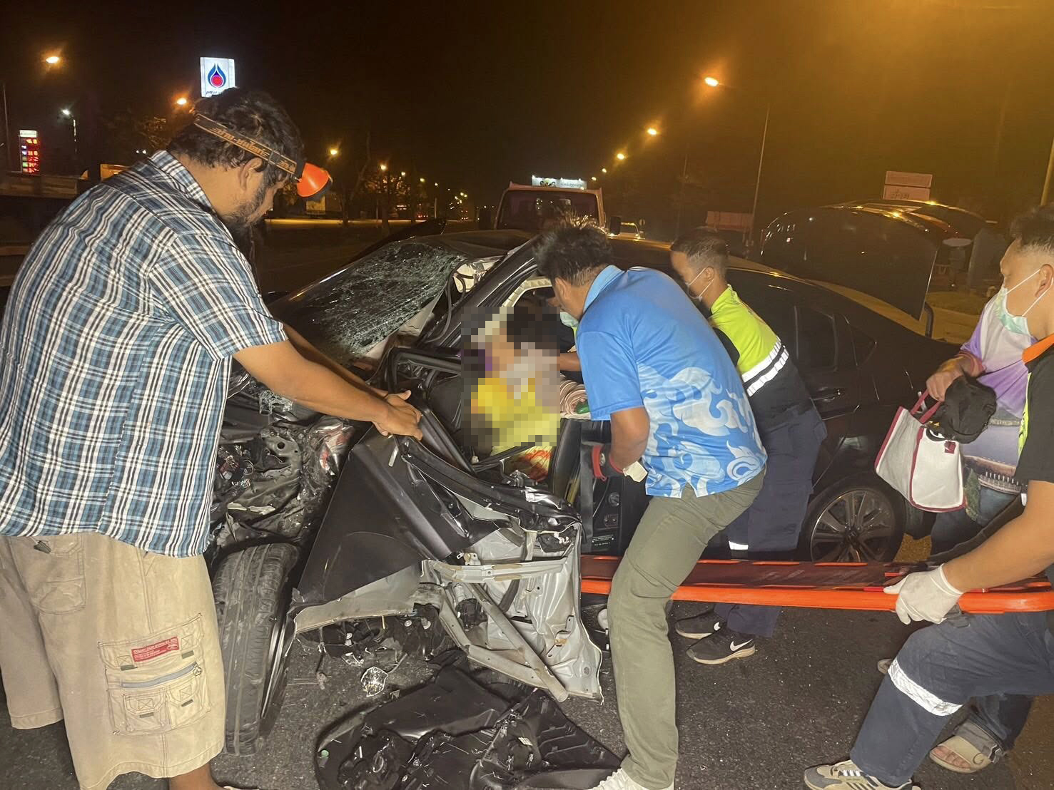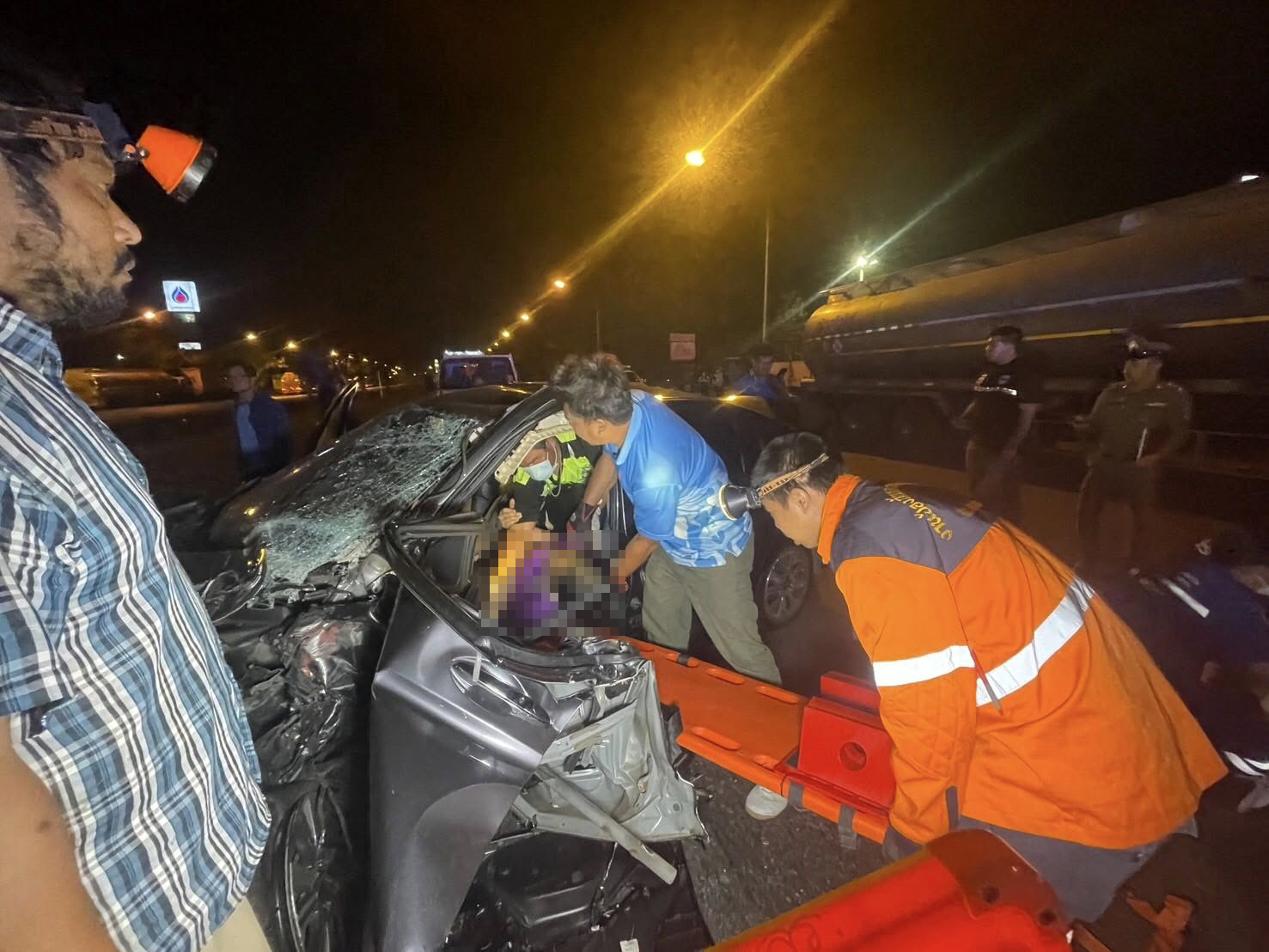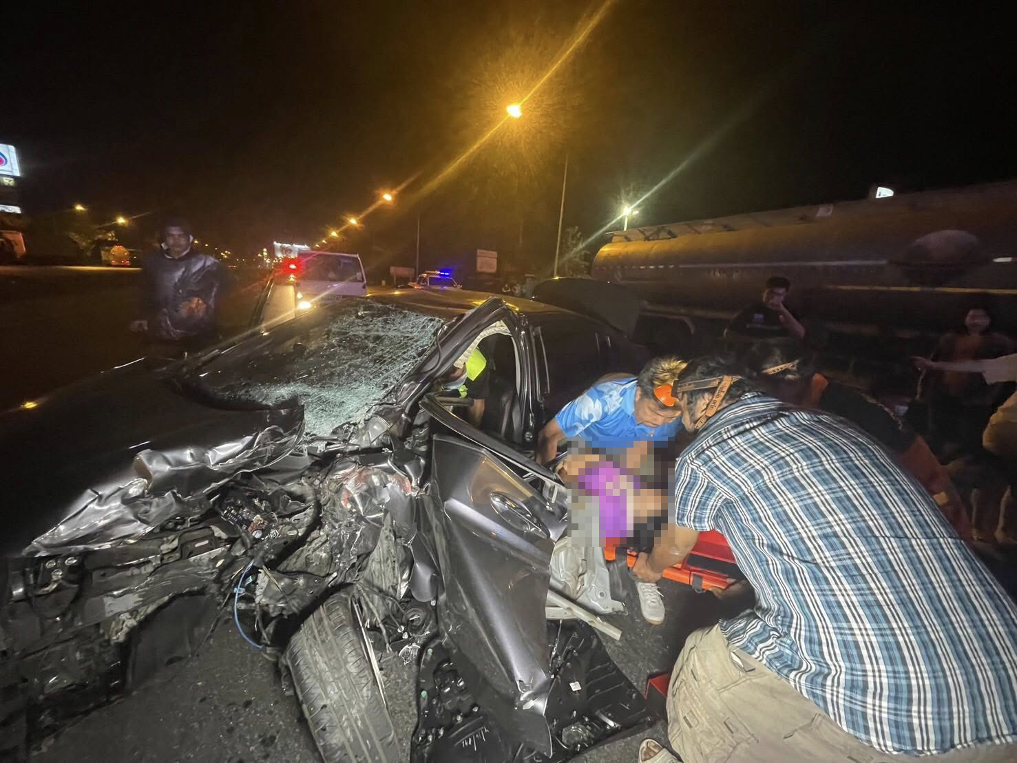 เมื่อเวลาประมาณ 01.40 น.วันที่ 29 มี.ค. 68 เจ้าหน้าที่ตำรวจ สภ.เถิน รับแจ้งว่าเกิดอุบัติเหตุรถยนต์เก๋งชนท้าย รถบรรทุกน้ำมันที่จอดพักข้างทาง บริเวณถนนพหลโยธิน หน้าปั๊มบ้านหนองเชียงราน ม.12 ต.ล้อมแรด อ.เถิน มีผู้ได้รับบาดเจ็บหลายรายและติดอยู่ภายในรถ จึงได้ประสานกู้ชีพ รพ.เถิน กู้ภัยออมบุญเถิน กู้ภัยเทศบาลเมืองล้อมแรด สมาคมกู้ภัยลำปาง จุดเถิน เข้าให้การช่วยเหลืออย่างเร่งด่วน จากนั้นจึงแจ้งทางร้อยเวรสอบสวน สภ.เถิน เข้าตรวจสอบเหตุ