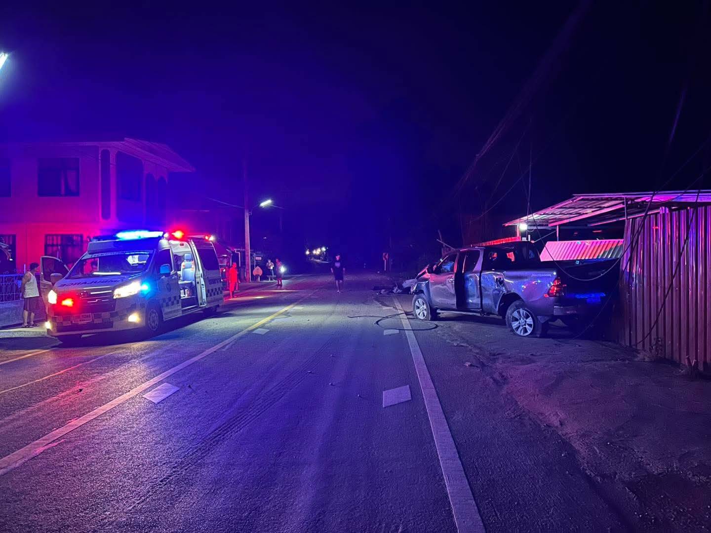 โดยในที่เกิดเหตุพบรถกระบะสีดำโตโยต้า สีดำ ทะเบียน จ.แพร่ สภาพด้านหน้ารถพังเสียหาย จอดแน่นิ่งอยู่ข้างทาง โดยพบสายไฟห้อยระโยงรยางค์ และมีเสาไฟฟ้าหักโค่น 1 ต้น รวมทั้งรั้วบ้านเรือนของประชาชน พังเสียหายทั้งแถบ เบื้องต้นพบคนขับรถเป็นชาย อายุประมาณ 20 ปี ได้รับบาดเจ็บ ทางเจ้าหน้าที่กู้ชีพได้ทำการปฐมพยาบาล และนำส่งรักษาต่อที่โรงพยาบาลเกาะคา