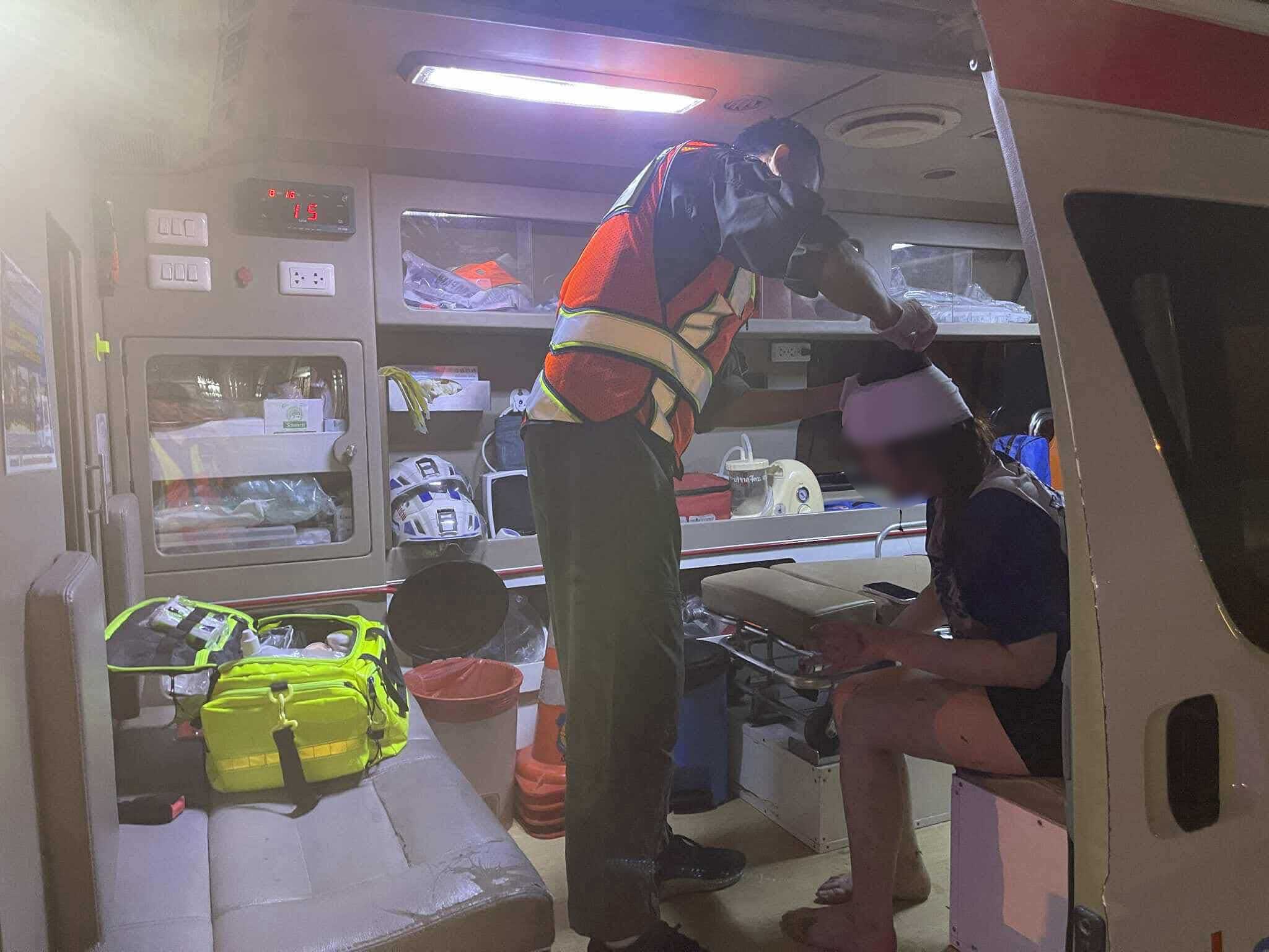 นอกจากนั้นมีผู้ได้รับบาดเจ็บอีก 1 ราย เป็นหญิง อายุประมาณ 20-25 ปี รู้สึกตัวดี ศรีษะแตก ถลอกฟกช้ำตามร่างกาย และปวดไหล่ขวา เจ้าหน้าที่ให้การช่วยเหลือปฐมพยาบาลเบื้องต้น รถกู้ชีพโรงพยาบาลลำปาง นำผู้ได้รับบาดเจ็บส่งโรงพยาบาลลำปาง