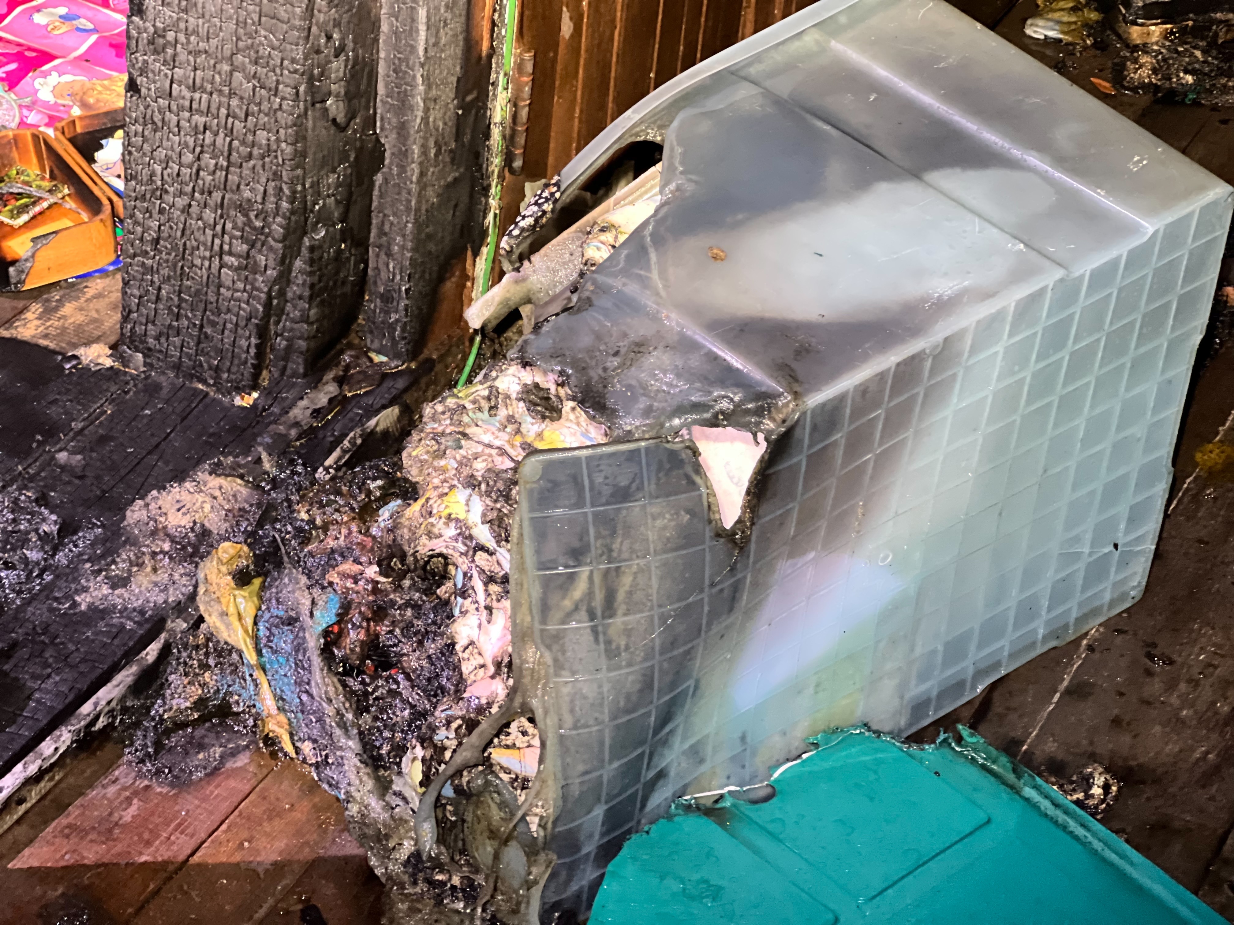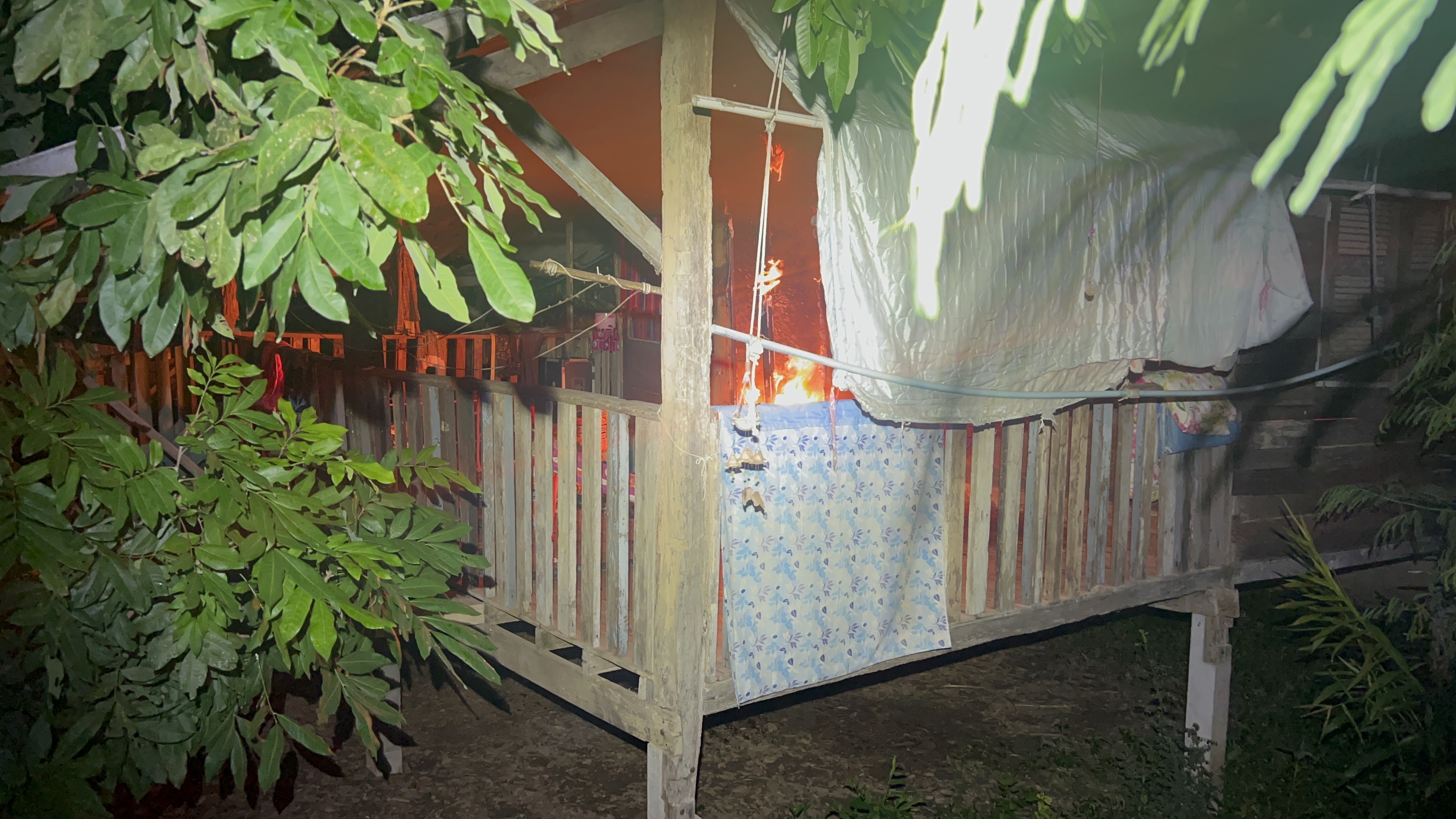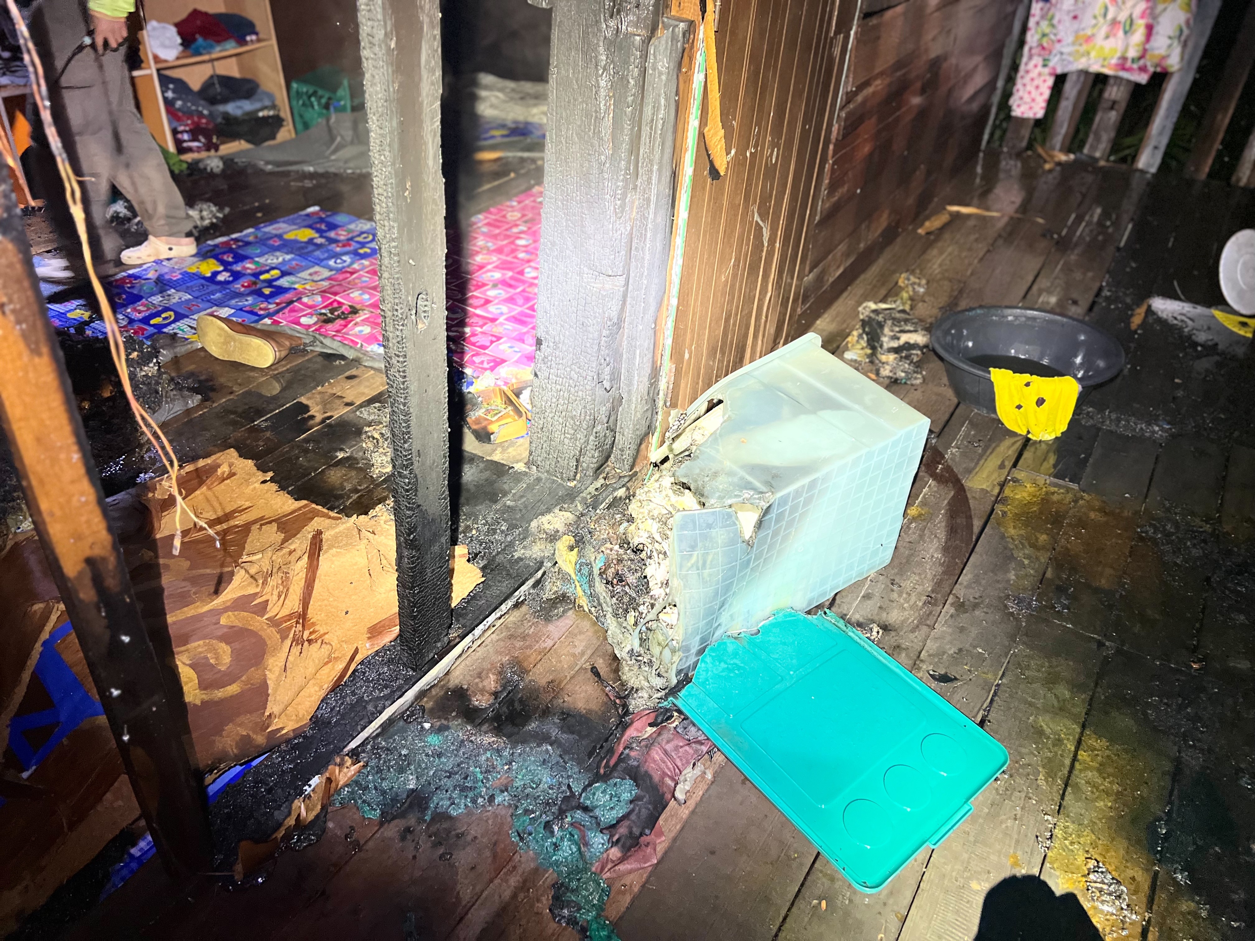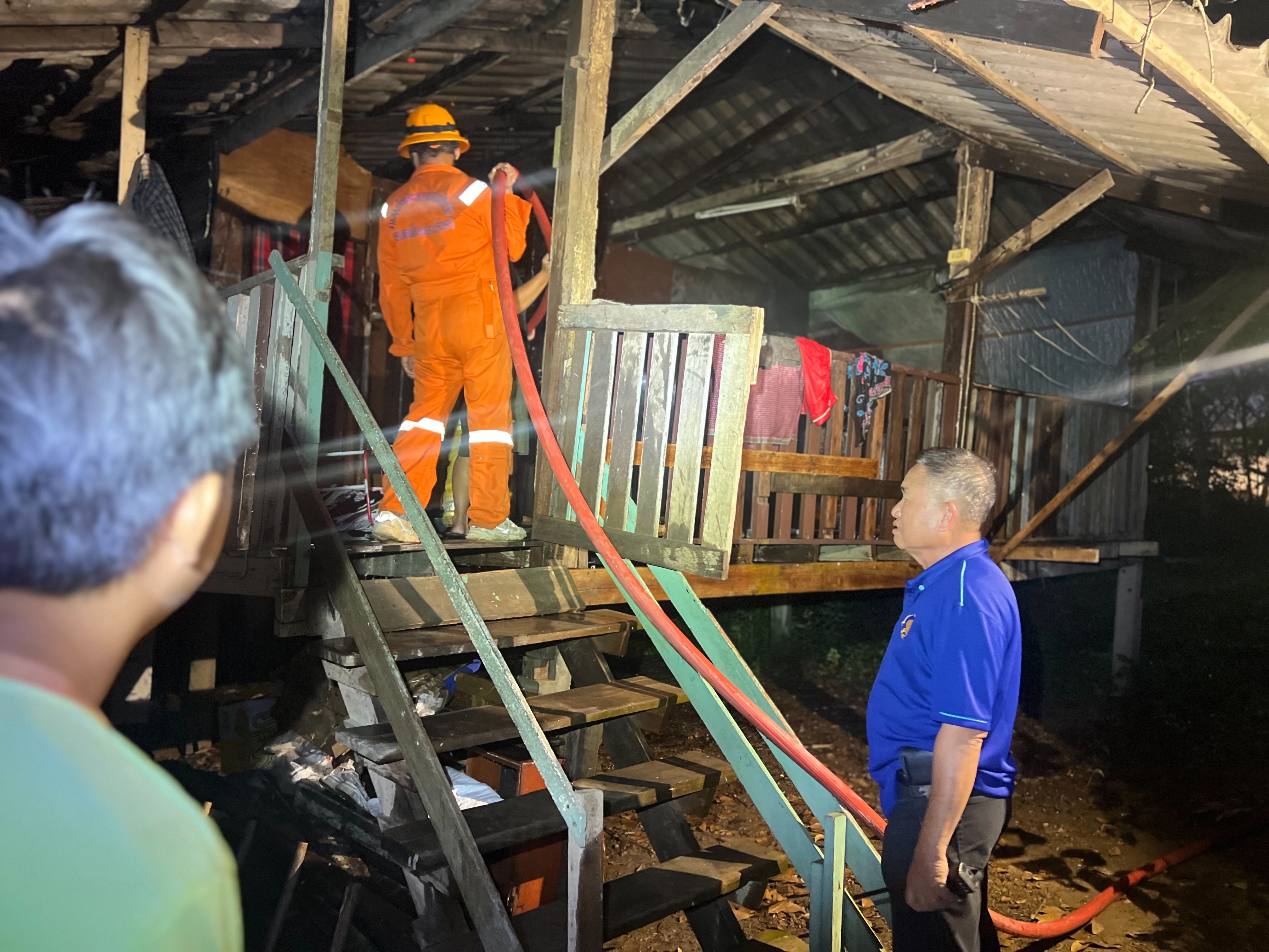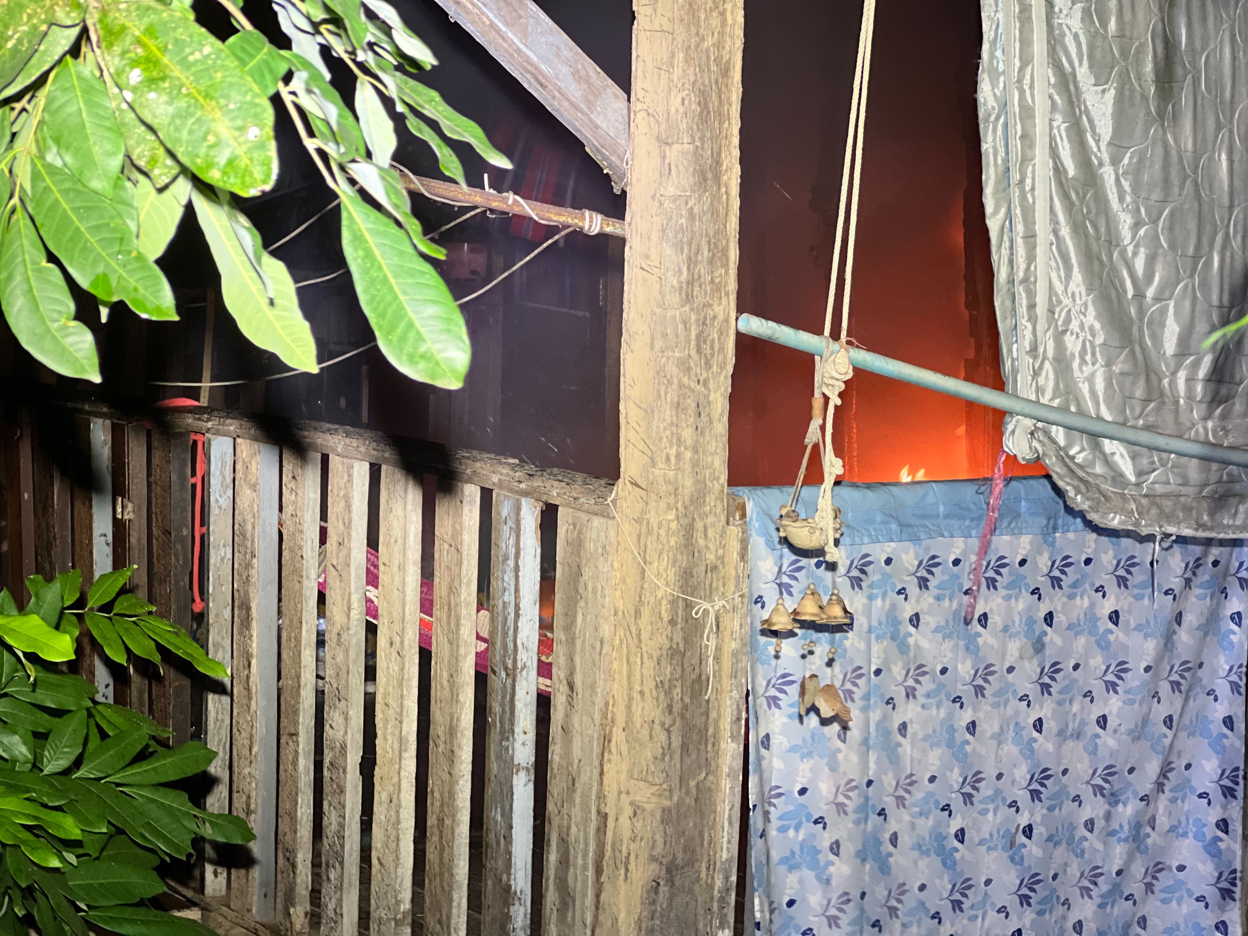 ในที่เกิดเหตุ เป็นบ้านไม้ยกพื้นสูง มีไฟไหม้ภายในโถงกลางบ้าน เ จ้าหน้าที่จึงเร่งฉีดน้ำควบคุมเพลิง ใช้เวลาประมาณ 15 นาทีจึงสามารถควบคุมเพลิงเอาไว้ได้ โดยพบว่าไฟได้ไหม้บ้านเสียหายบริเวณเสากลางบ้าน