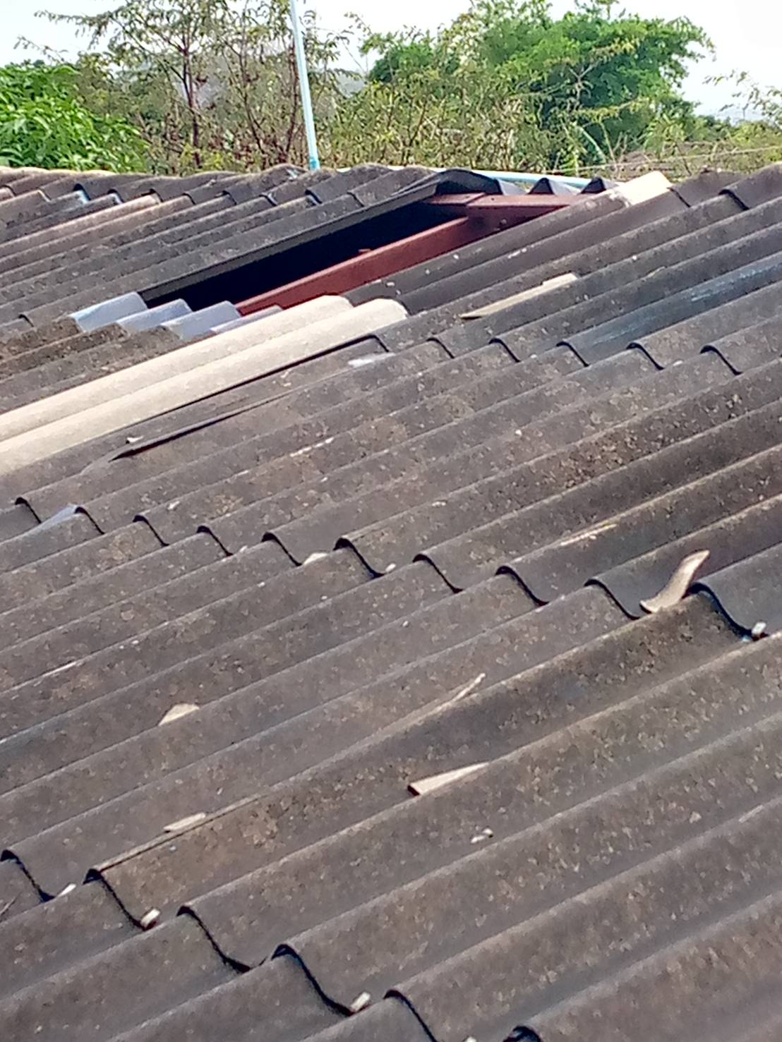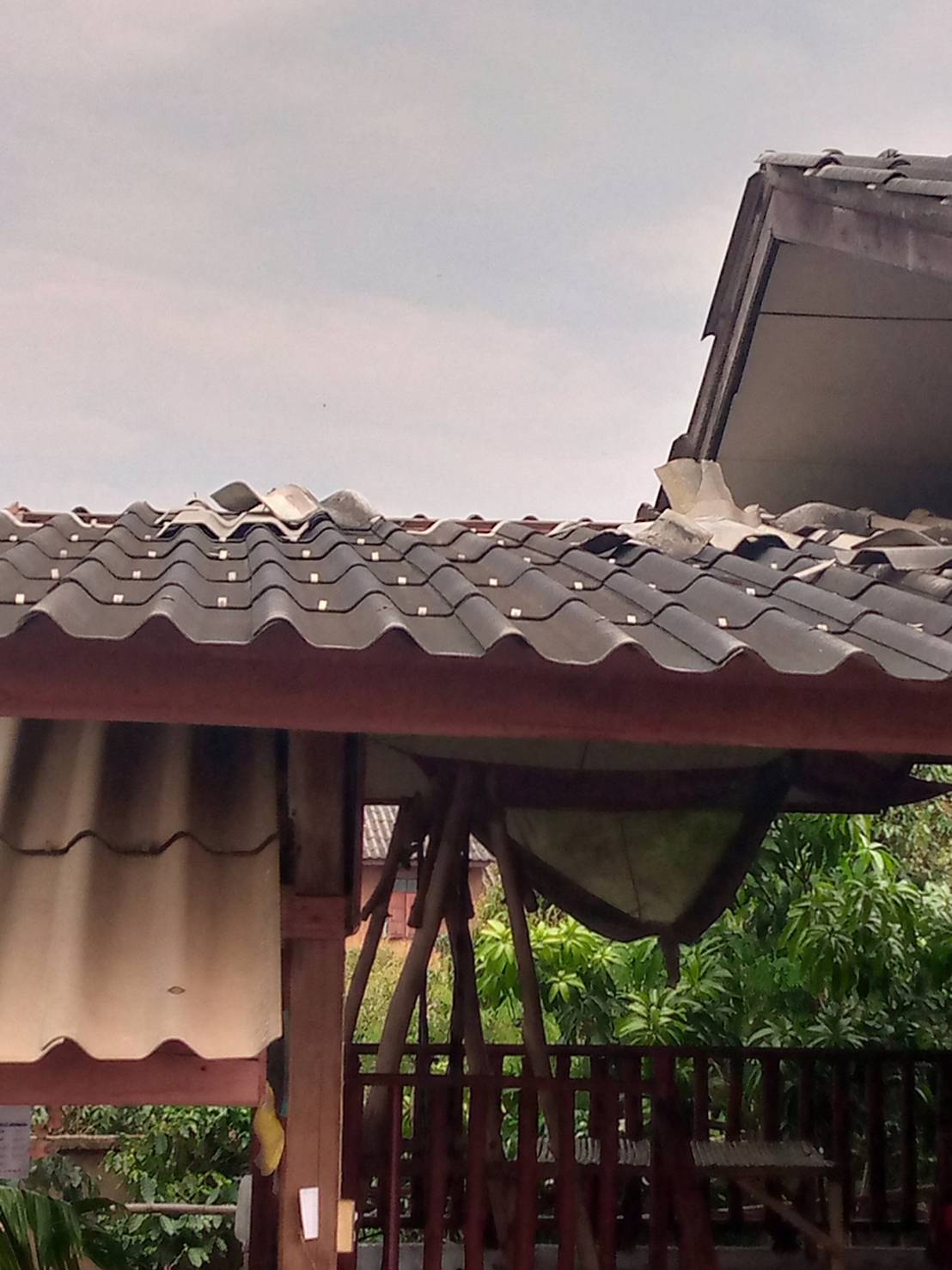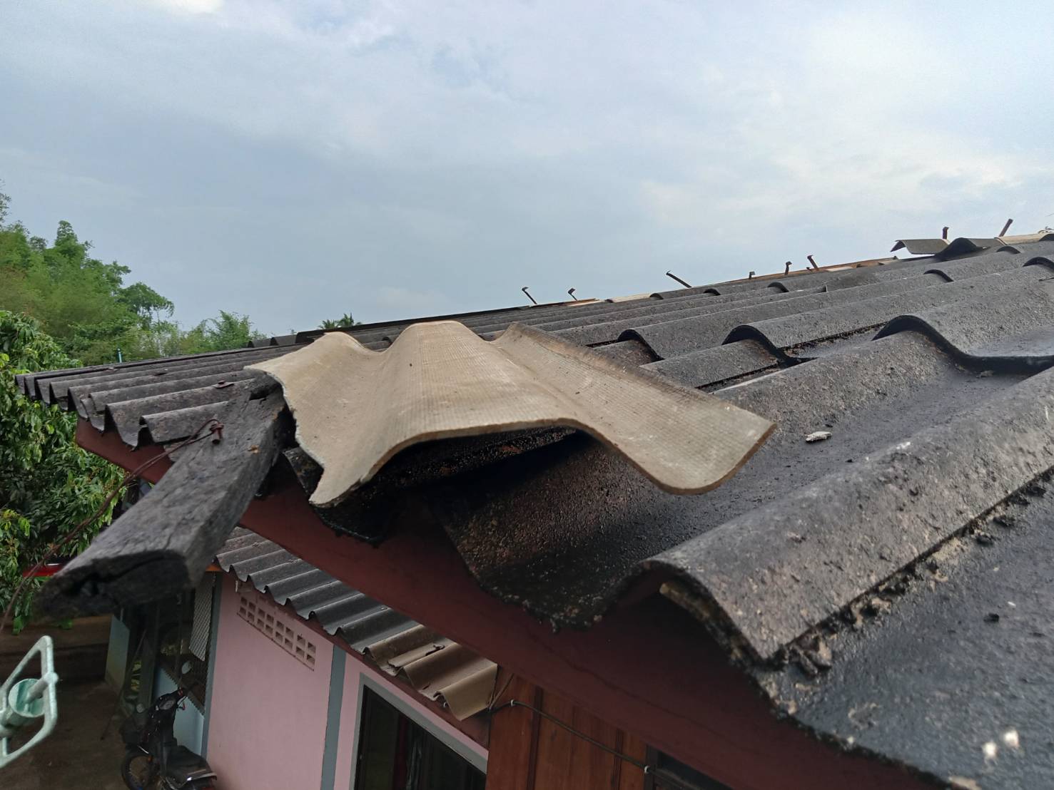 – บ้านชีวิตใหม่ หมู่ที่ 5 เสียหาย 1 ครัวเรือน กระเบื้อง 16 แผ่น ครอบหลังคา 6 แผ่น
