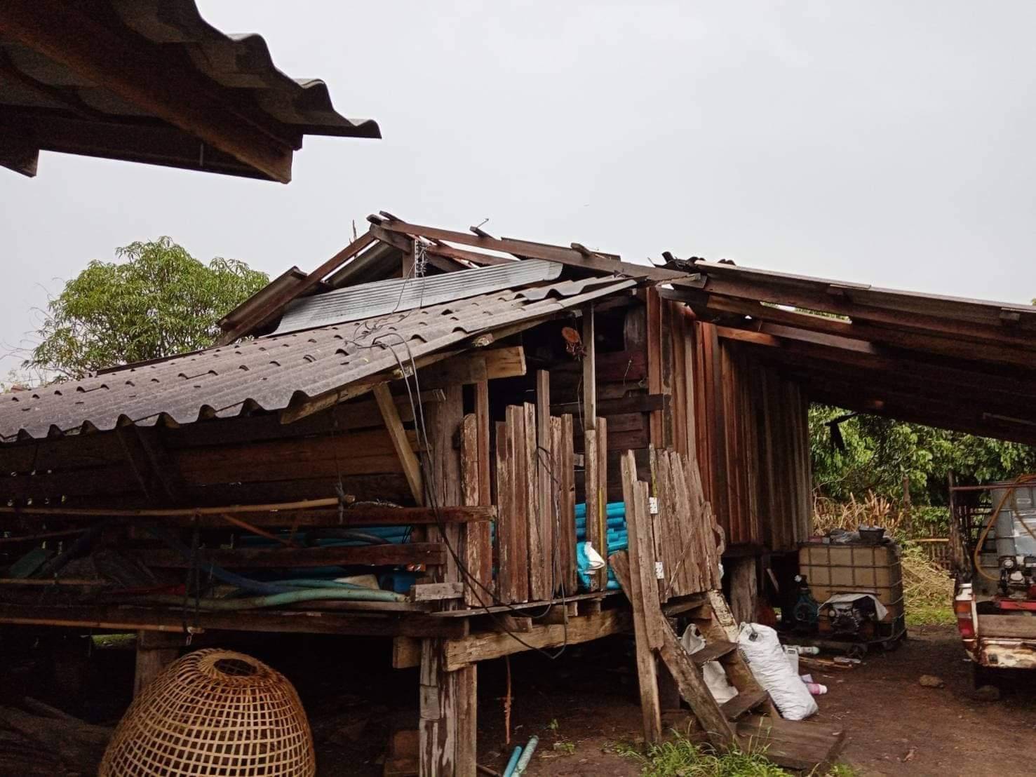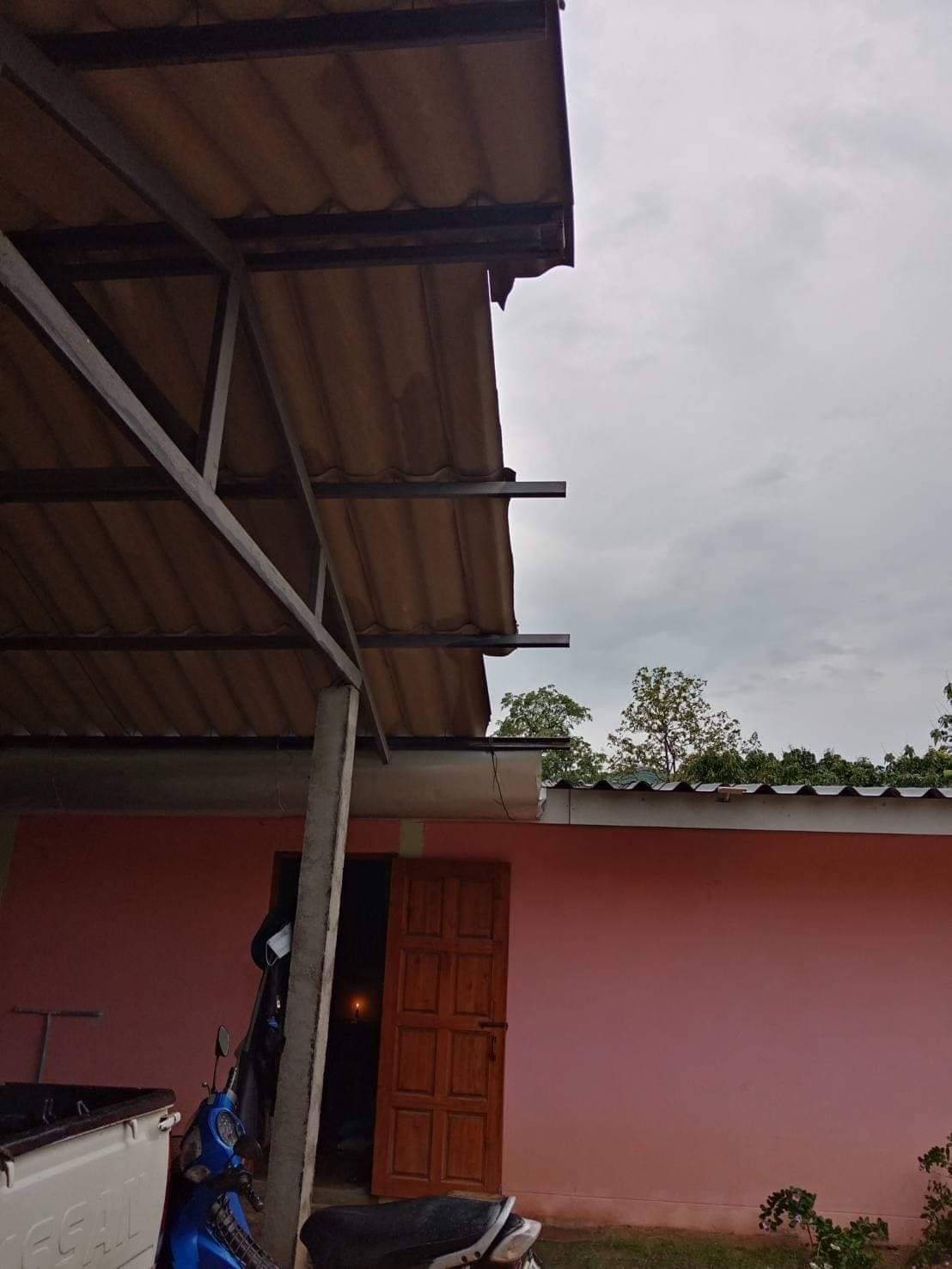 รวมได้รับผลกระทบ จำนวน 4 หมู่บ้าน 21 ครัวเรือน กระเบื้อง 300 แผ่น