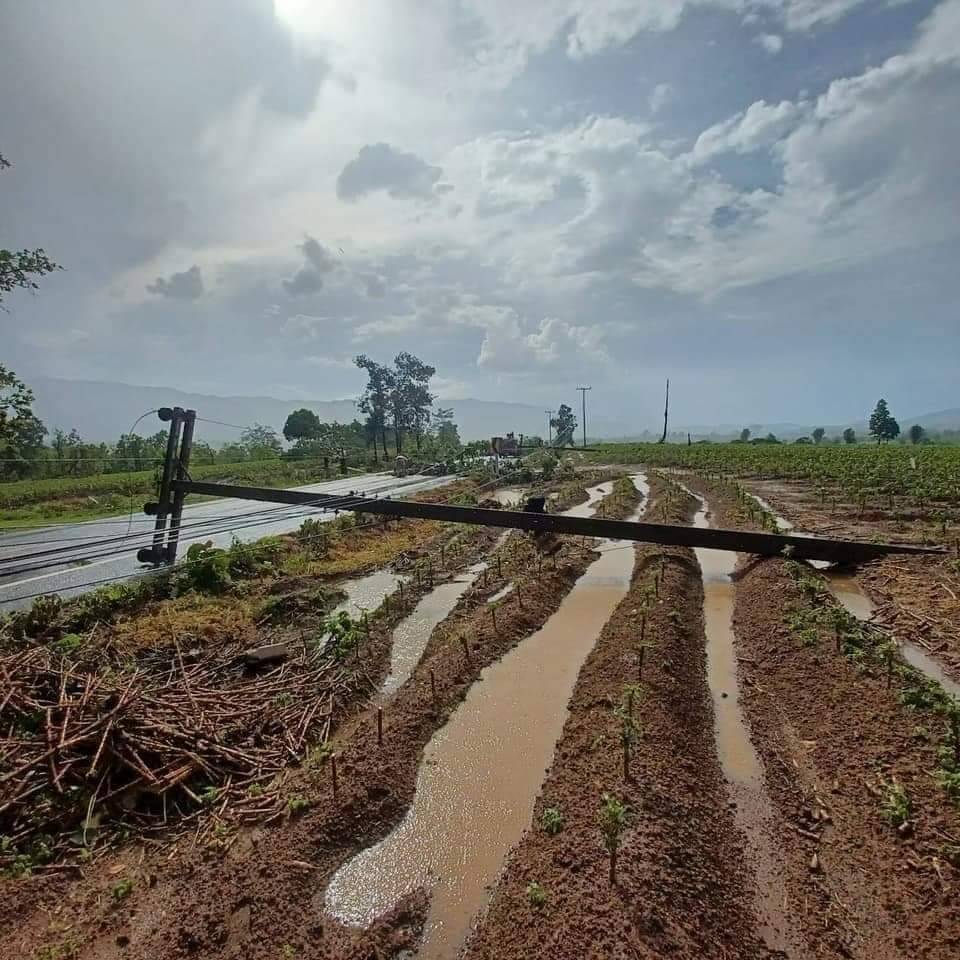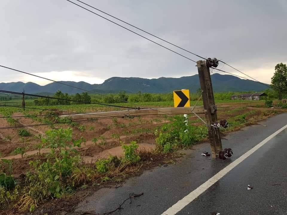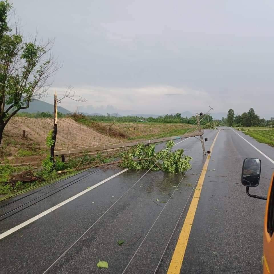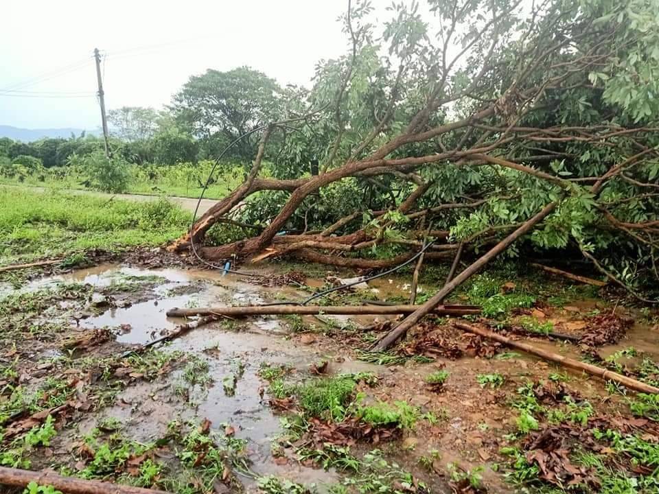 - บ้านผาต้าย หมู่ที่ 1 เสียหาย 5 ครัวเรือน กระเบื้อง 45 แผ่น ครอบ 2 แผ่น ลำไย 8 ต้น