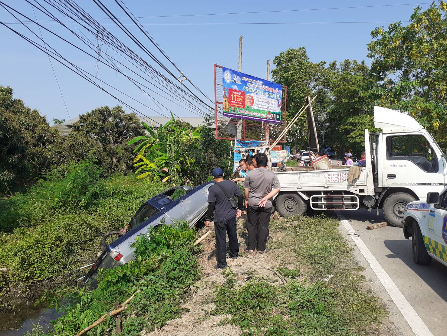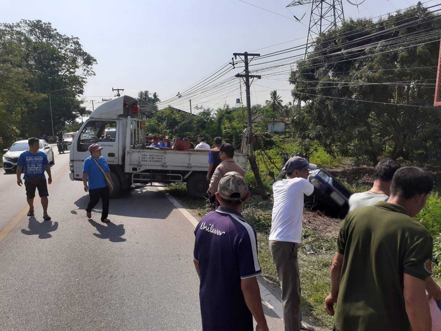 เมื่อเวลา 07.00 น.วันที่ 2 พ.ค. 68 สว.สอบสวน สภ.เมือง ลำพูน รับแจ้งเหตุรถกระบะพลิกคว่ำ มีผู้เสียชีวิต 1 ราย บนถนนสายริมปิง-ป่าเห็ว บ้านหนองช้างคืน หมู่ 4 ต.หนองช้างคืน อ.เมืองลำพูน จึงรุดไปที่เกิดเหตุพร้อมกู้ภัย พบข้างถนนเป็นร่องน้ำลึกประมาณ 3 เมตร มีรถกระบะ สีน้ำเงิน พลิกหงายท้อง ที่หน้ารถบริเวณเบาะคนขับมีผู้เสียชีวิต ทราบชื่อนายจรัล อายุ 57 ปี ชาว ต.ประตูป่า อ.เมืองลำพูน ผู้สมัคร สท.เทศบาลตำบลประตูป่า