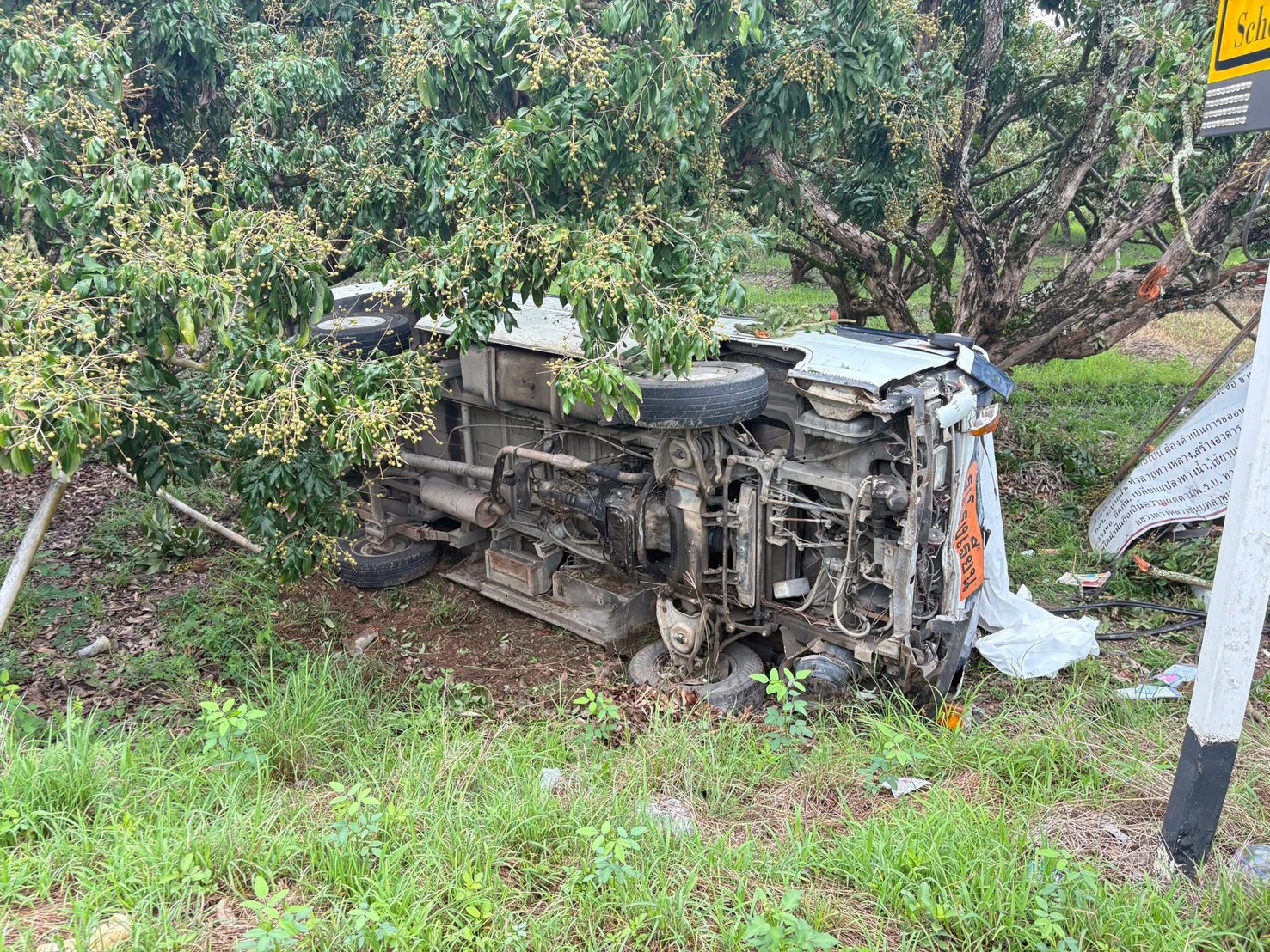 เมื่อเวลา 07.45 น.วันที่ 17 พ.ค. 68 เกิดอุบัติเหตุรถตู้พลิกคว่ำบริเวณทางเข้าหมู่บ้านห้วยส้ม ต.เหมืองจี้ อ.เมืองลำพูน