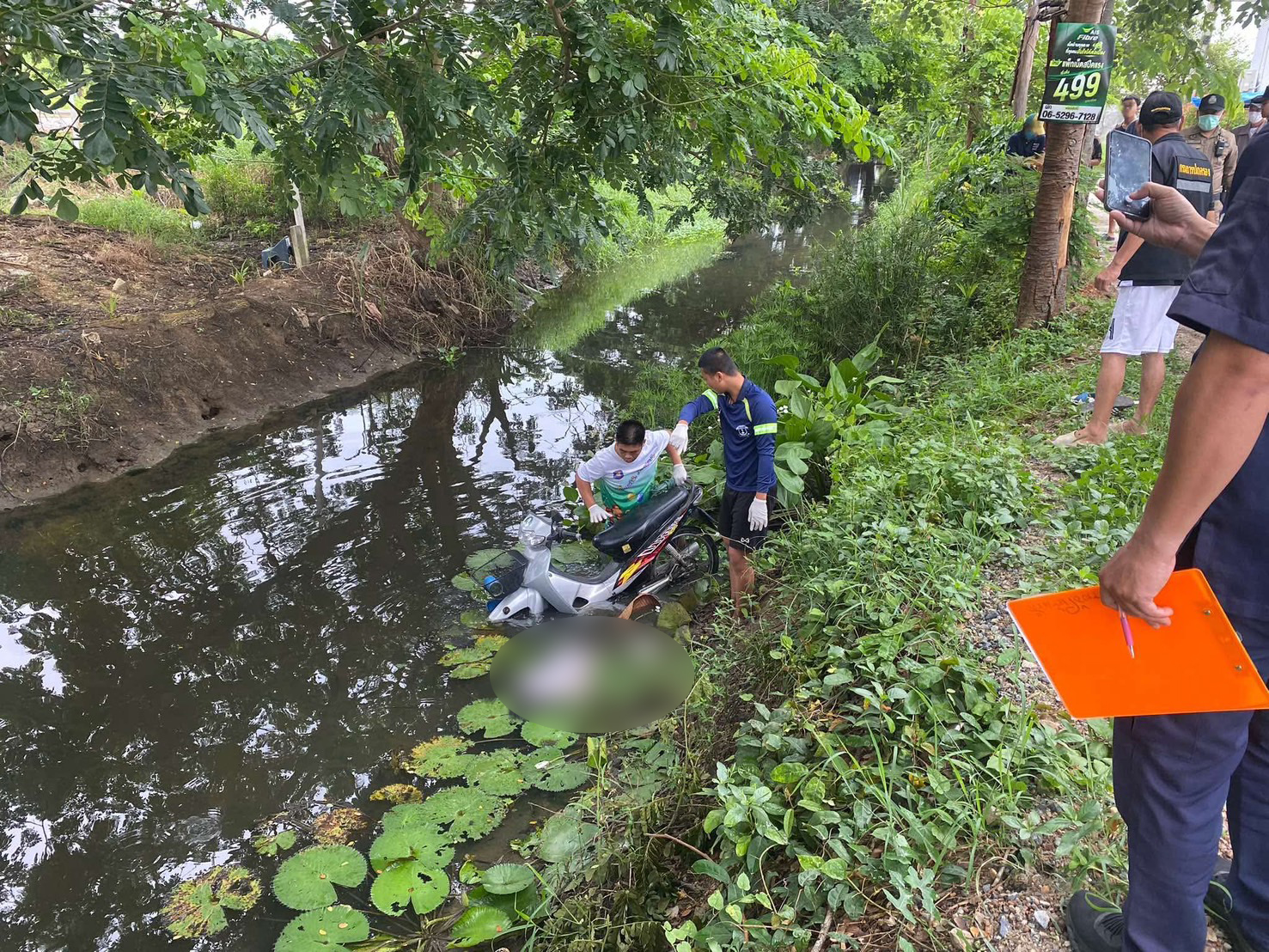 เมื่อเวลา07:00น. วันที่ 6 ก.ค.2568 พนักงานสอบสวนสภ.เมือง ลำพูน รับแจ้งจยย.ตกน้ำ บริเวณบ้านศรีสองเมืองซอยที่25 ต.เหมืองง่า มีผู้เสียชีวิต 1 ราย ทางสมาคมกู้ชีพ-กู้ภัยลำพูนได้จัดเจ้าหน้าที่ออกตรวจสอบร่วมกับสายตรวจเหมืองง่า และกู้ภัยสว่างนครลำพูน ต่อมาทางกู้ภัย นำร่างผู้เสียชีวิต เป็นชาย ทราบชื่อนายไก่ ไม่ทราบนามสกุล อายุประมาณ 50-60 ปีพร้อมรถจยย.ขึ้นมาจากน้ำไว้บนฝั่ง เพื่อให้เจ้าหน้าที่ตำรวจชันสูตรพลิดศพในเบื้องต้น
