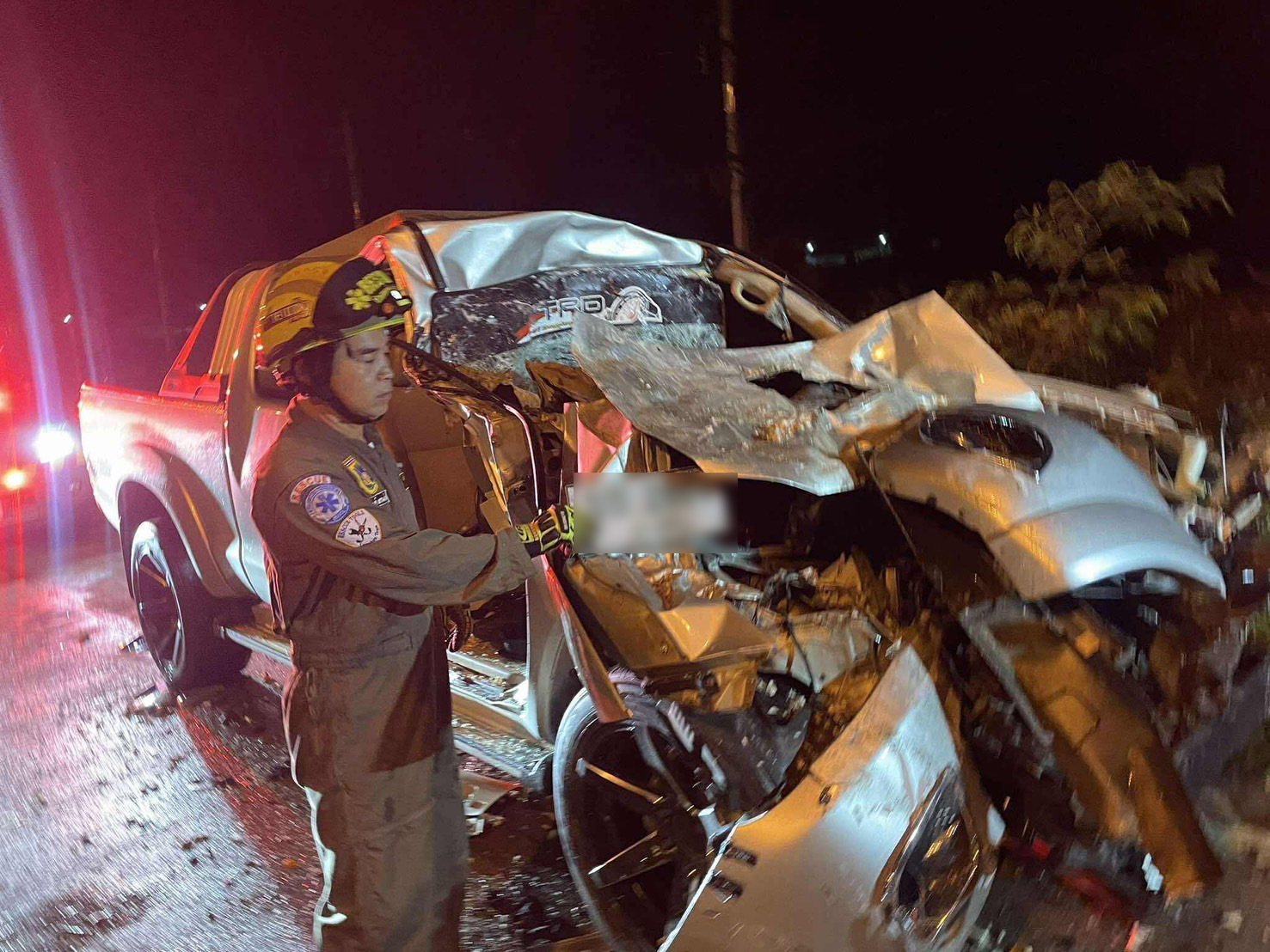 หนุ่มซิ่งกระบะชนอัดท้ายสิบล้อ หน้ารพ.ลำพูนใกล้หมอ บาดเจ็บติดคารถ