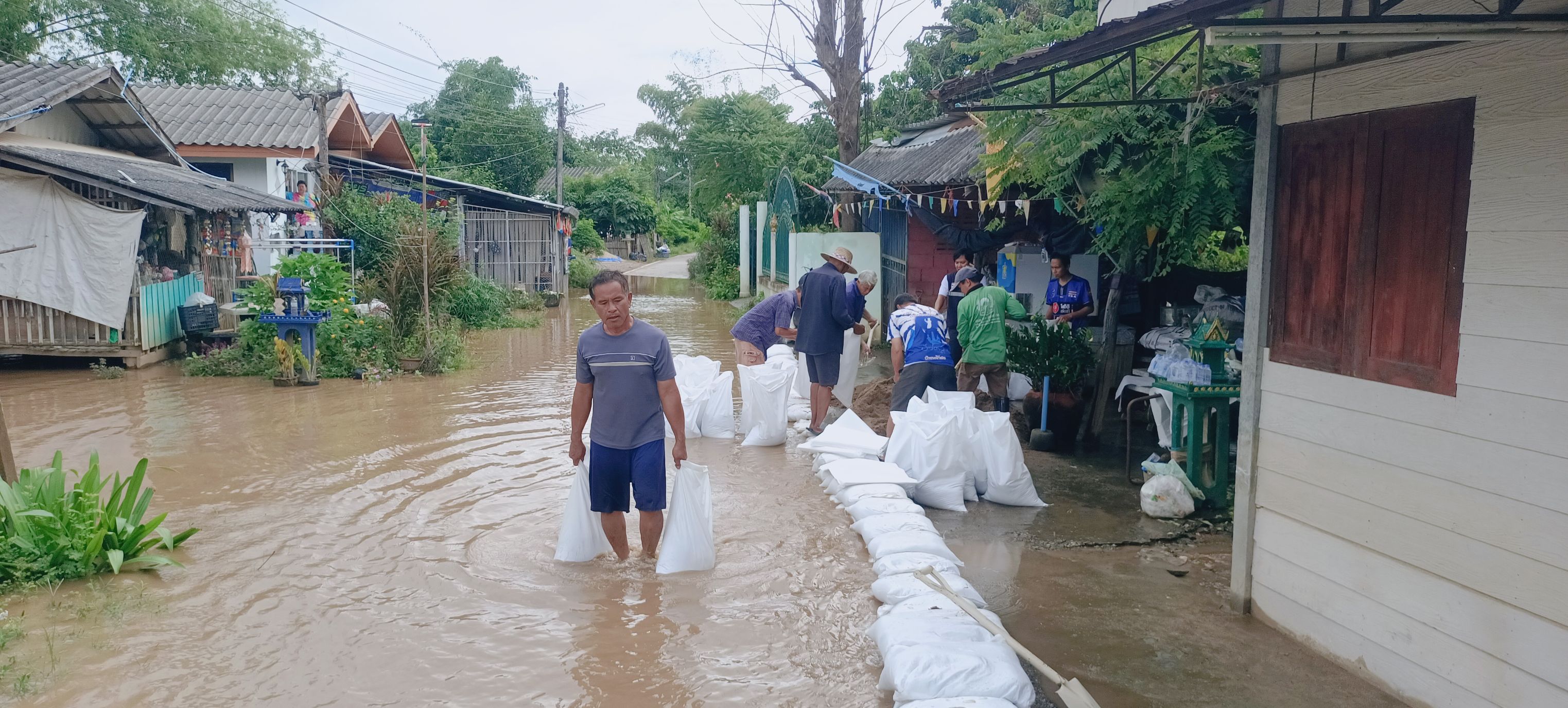 6. พื้นที่ ม.3 ตำบลบ้านเรือน ประสาน อบต.บ้านเรือน กำนัน ผญบ.เข้าช่วยเหลือนำกระสอบทราย เพื่อวางเป็นแนวกั้นทางน้ำเพื่อมิให้เข้าท่วมนาข้าวของราษฎร