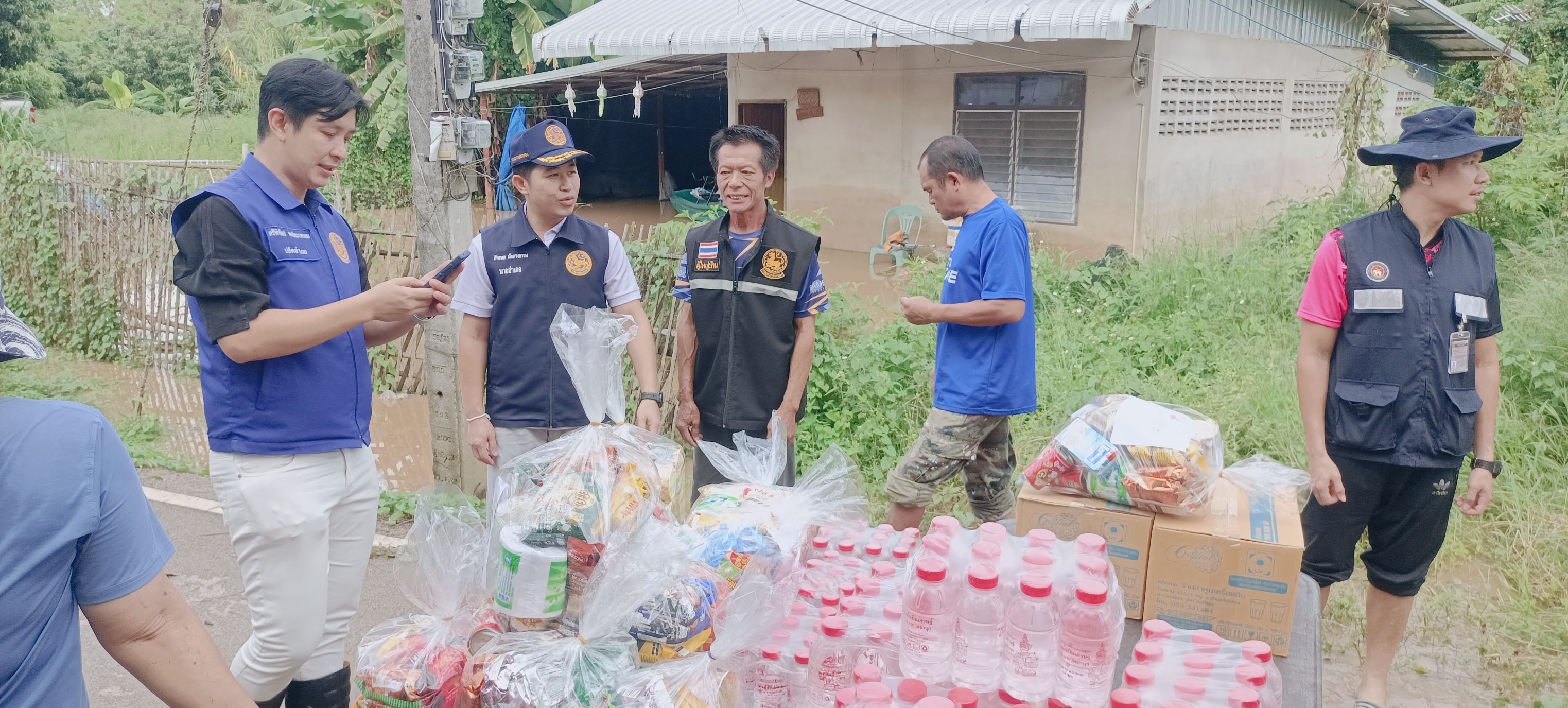5. ลงพื้นที่มอบถุงธารน้ำใจ พร้อมน้ำดื่มให้กับ ราษฎรที่ประสบน้ำปิงเออล้นตลิ่งเข้าท่วมบ้านเรือนอยู่อาศัย บ้านปากบ่อง(บ้านก้อง) ม.5 ต.ปากบ่อง เพื่อเป็นขวัญกำลังใจ พร้อมให้ความช่วยเหลือกลุ่มเปราะบาง จำนวน 12 ครัวเรือน ทั้งนี้ ได้ให้ ทต.ป่าซาง นำกระสอบทรายจำนวน 150 ใบ เข้าทำแนวป้องกันฯ ช่วยเหลือเพื่อมิให้น้ำไหลเข้าบ้านเรือนราษฎรอีกฝั่งถนน