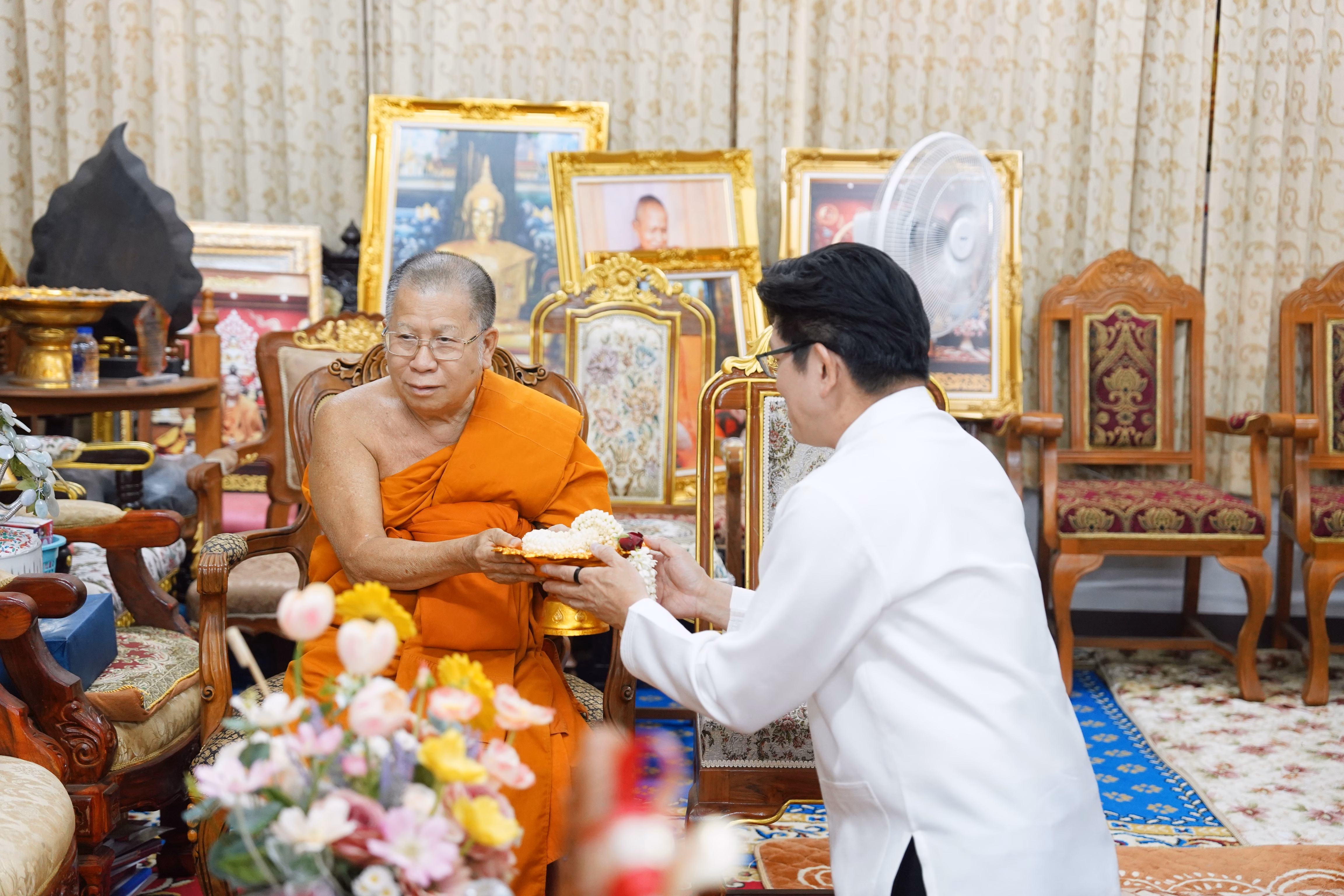 กราบนมัสการและขอพร พระเทพรัตนนายก เจ้าคณะจังหวัดลำพูน เจ้าอาวาสวัดพระธาตุหริภุญชัย เนื่องในเทศกาลวันสงกรานต์
