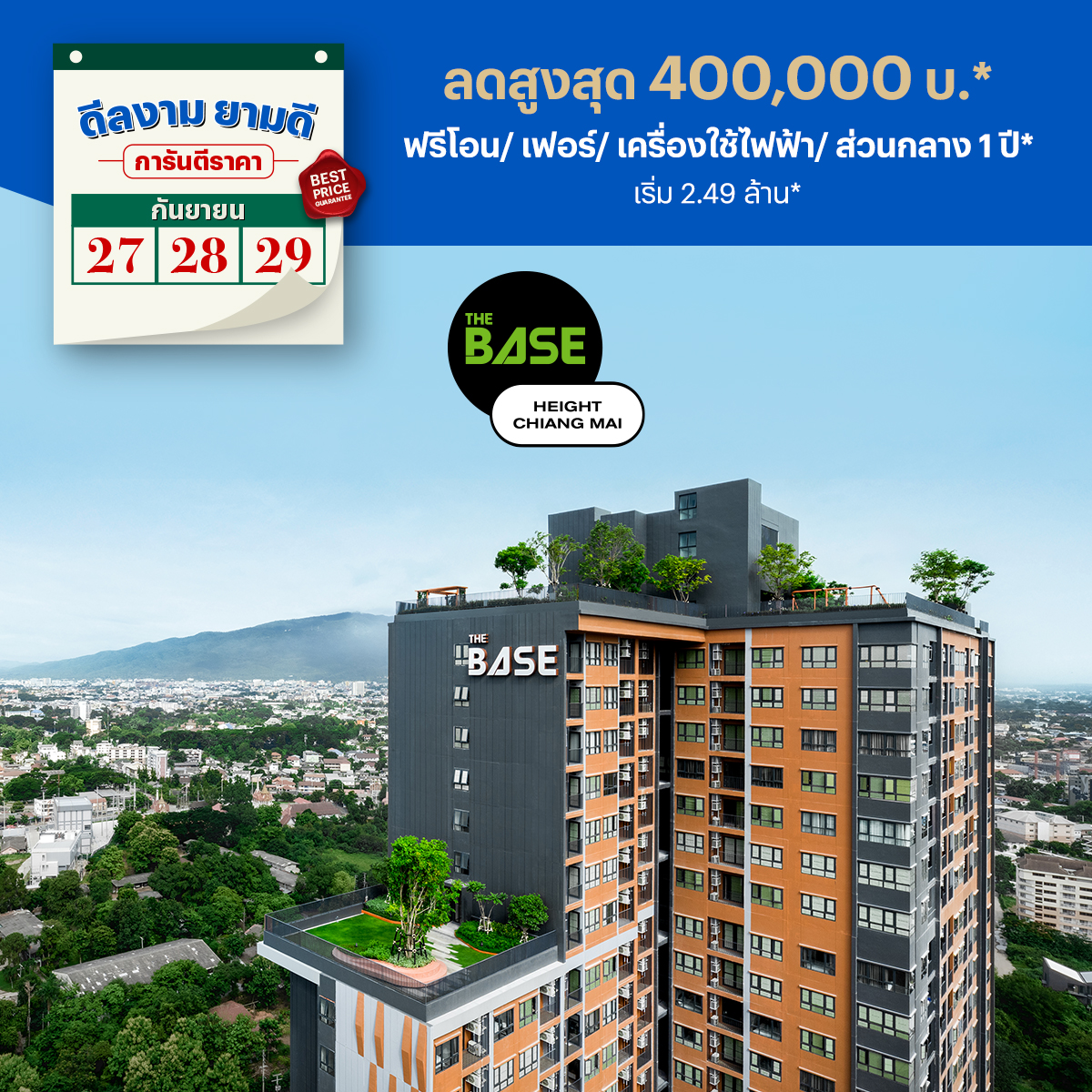 จอง “เดอะ เบส ไฮท์-เชียงใหม่” พร้อมกันเที่ยงตรง! 27 – 29 ก.ย.นี้ BEST PRICE GUARANTEE เจอถูกกว่า คืนส่วนต่าง 100%* ที่ 24 Online Booking เท่านั้น