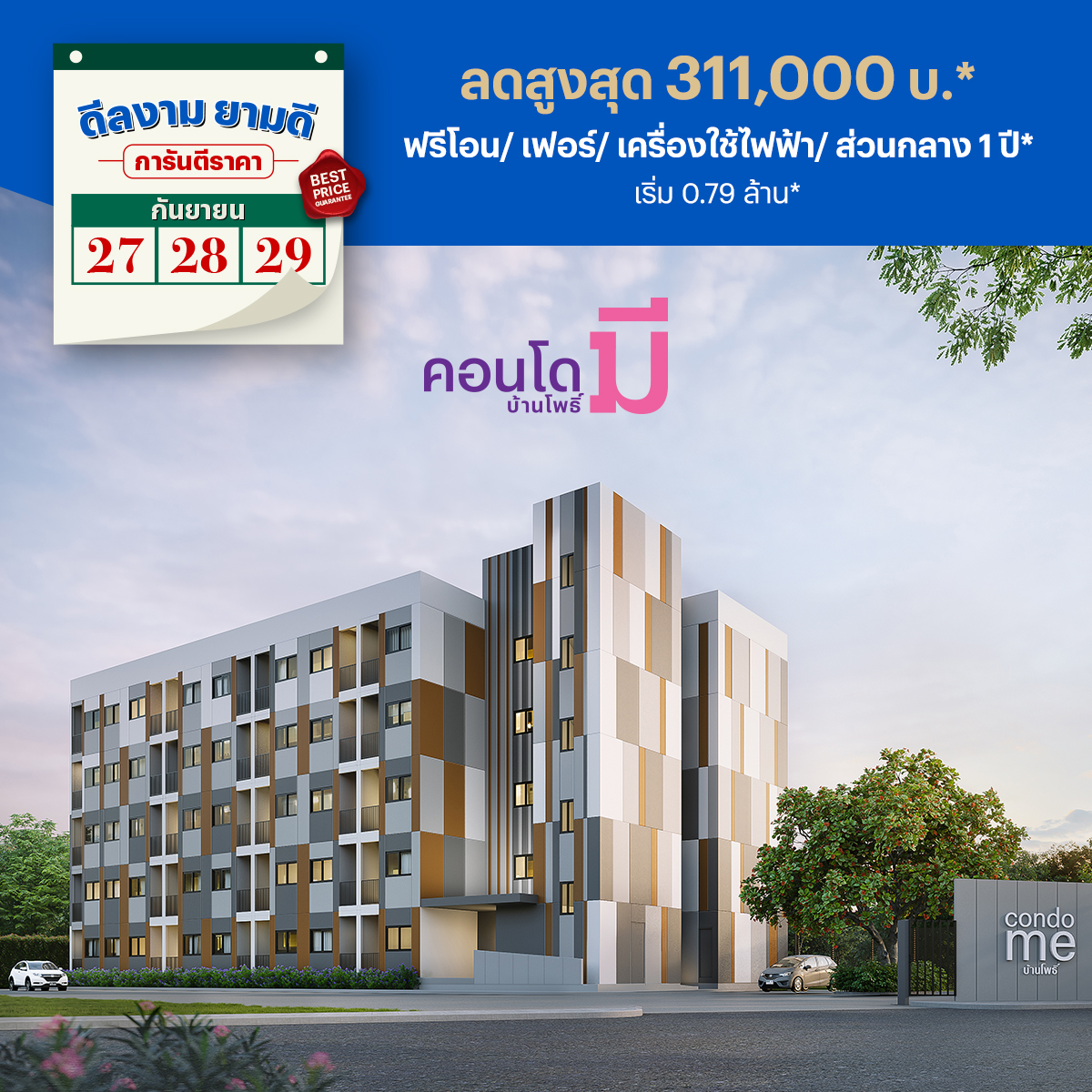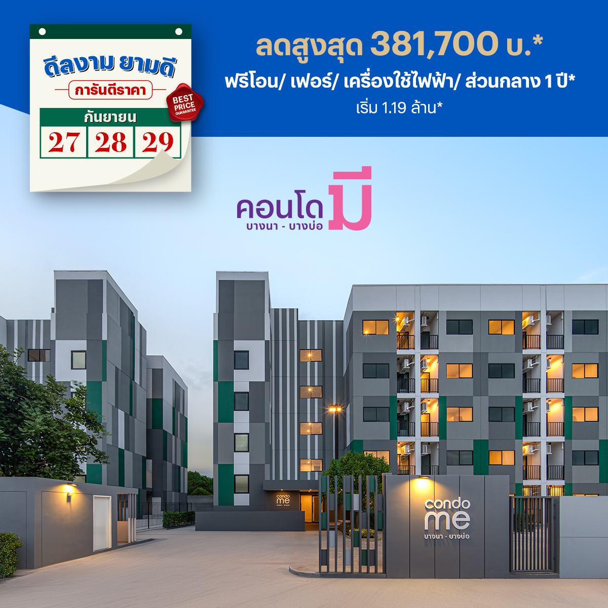 จอง “คอนโดมี บางนา-บางบ่อ” พร้อมกันเที่ยงตรง! 27 – 29 ก.ย.นี้ BEST PRICE GUARANTEE เจอถูกกว่า คืนส่วนต่าง 100%* ที่ 24 Online Booking เท่านั้น