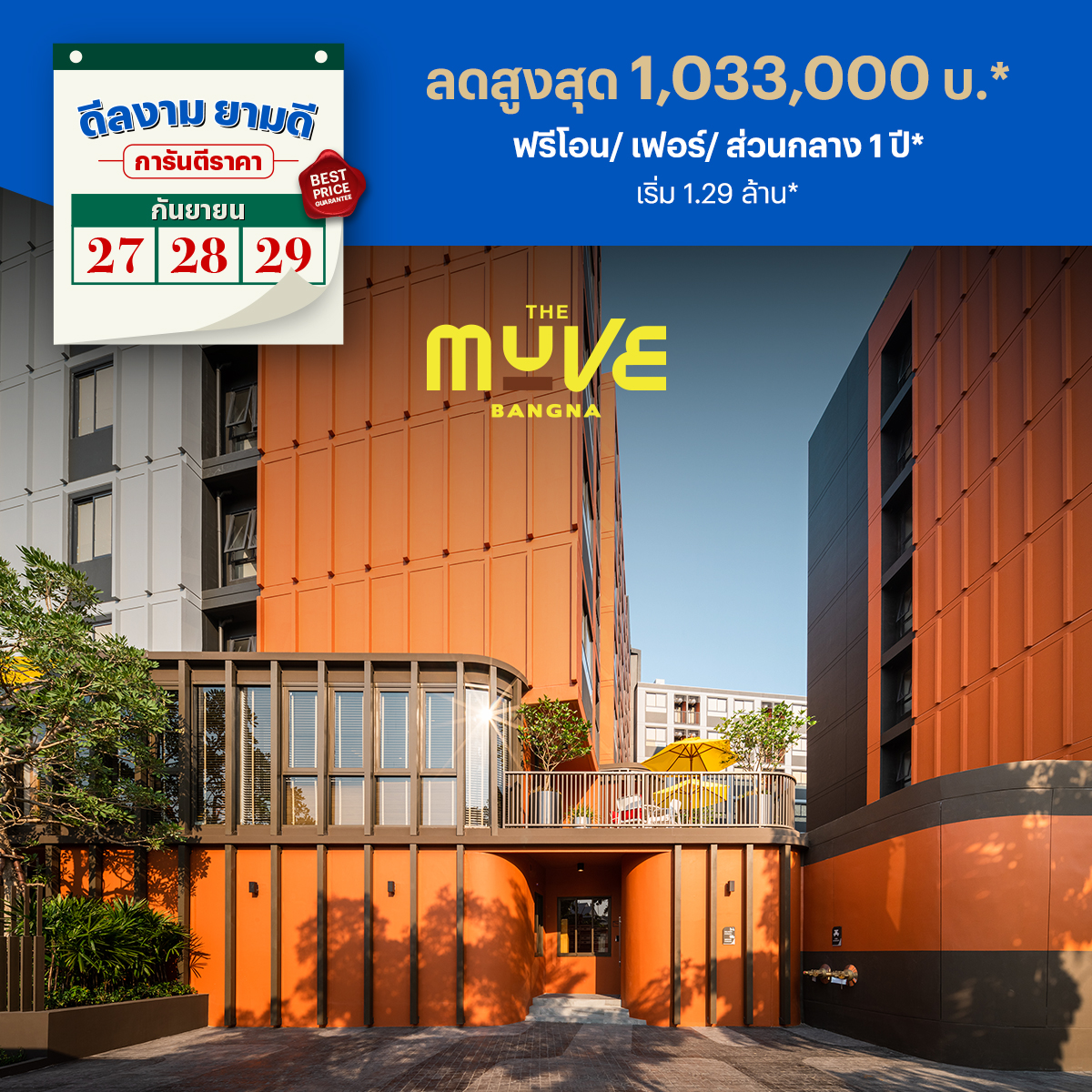จอง “เดอะมูฟ บางนา” พร้อมกันเที่ยงตรง! 27 – 29 ก.ย.นี้ BEST PRICE GUARANTEE เจอถูกกว่า คืนส่วนต่าง 100%* ที่ 24 Online Booking เท่านั้น