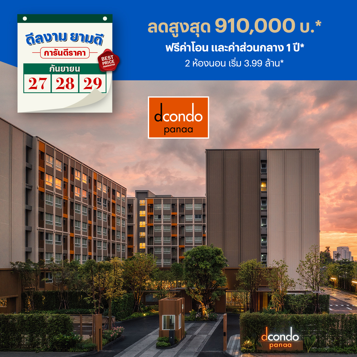 จอง “ดีคอนโด พนา” พร้อมกันเที่ยงตรง! 27 – 29 ก.ย.นี้ BEST PRICE GUARANTEE เจอถูกกว่า คืนส่วนต่าง 100%* ที่ 24 Online Booking เท่านั้น