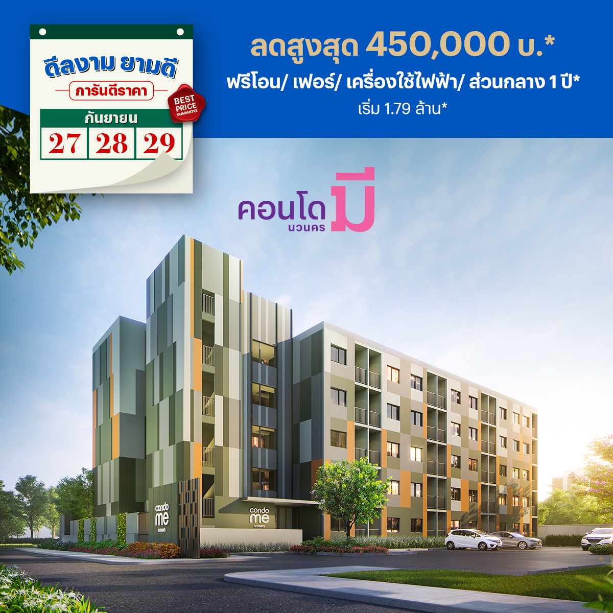 จอง “คอนโดมี นวนคร” พร้อมกันเที่ยงตรง! 27 – 29 ก.ย.นี้ BEST PRICE GUARANTEE เจอถูกกว่า คืนส่วนต่าง 100%* ที่ 24 Online Booking เท่านั้น