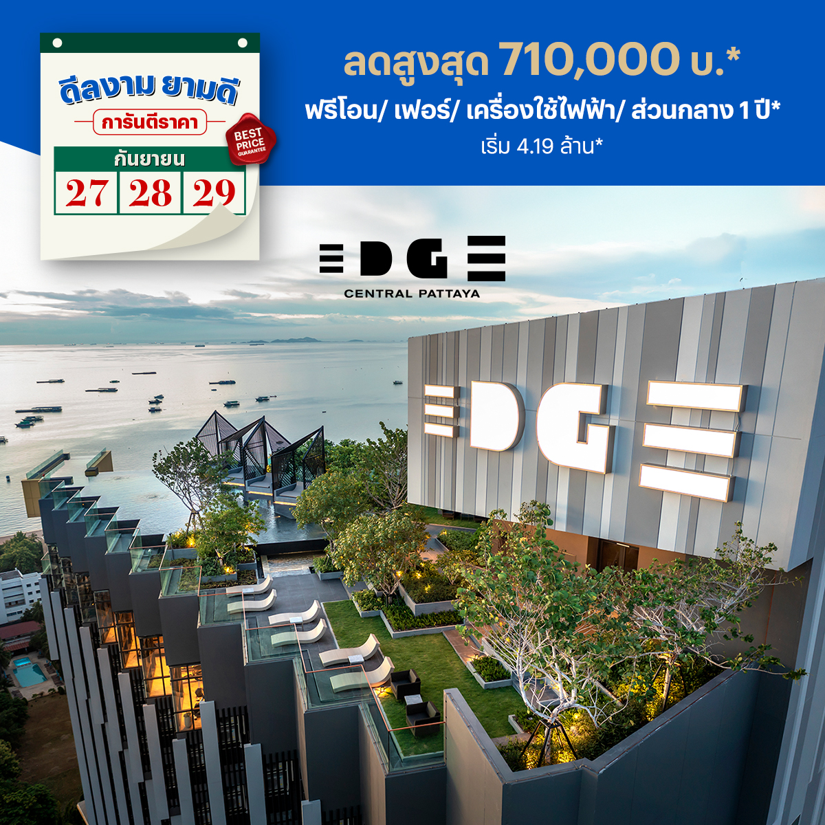 จอง “เอดจ์ เซ็นทรัล พัทยา” พร้อมกันเที่ยงตรง! 27 – 29 ก.ย.นี้ BEST PRICE GUARANTEE เจอถูกกว่า คืนส่วนต่าง 100%* ที่ 24 Online Booking เท่านั้น