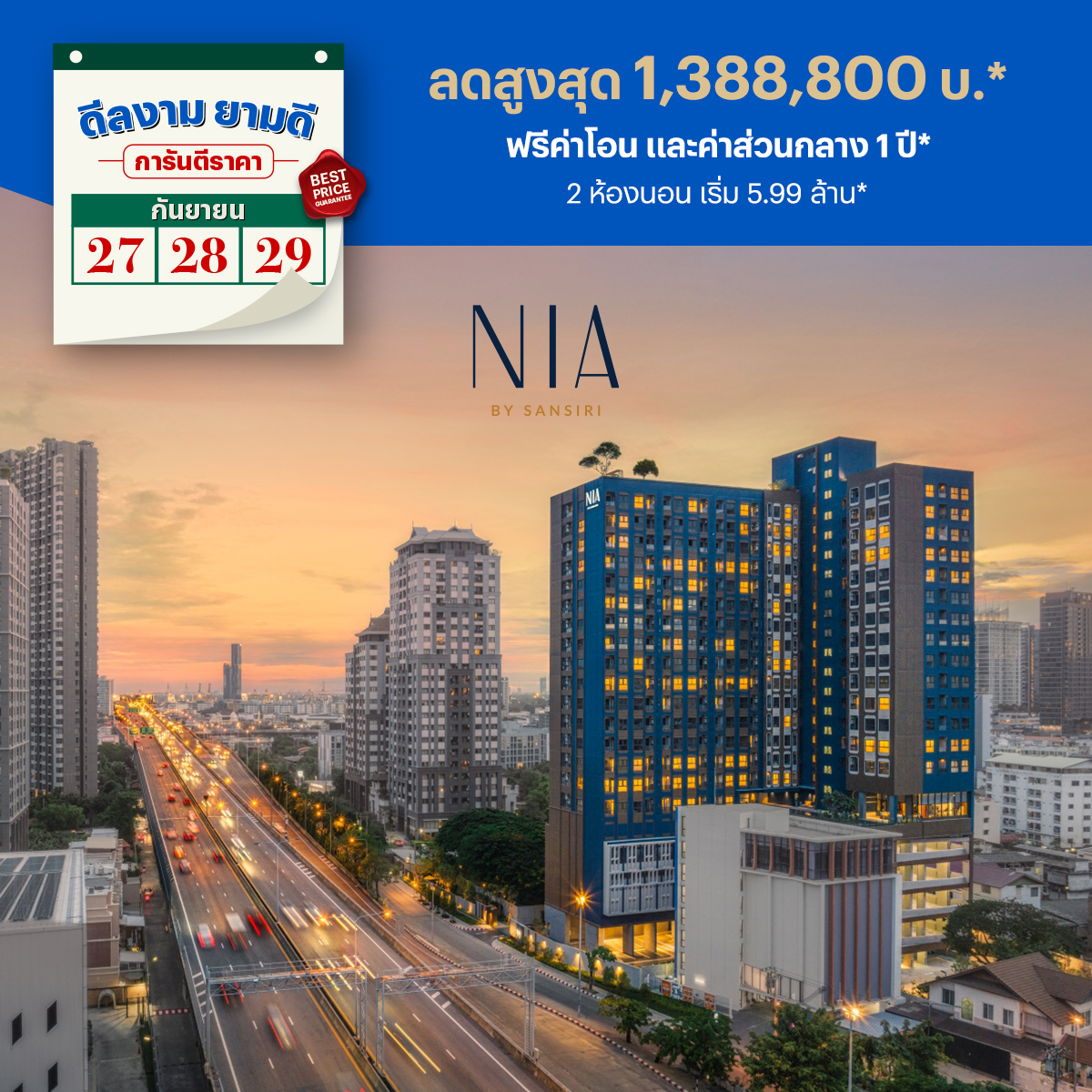 จอง “เนีย บาย แสนสิริ” พร้อมกันเที่ยงตรง! 27 – 29 ก.ย.นี้ BEST PRICE GUARANTEE เจอถูกกว่า คืนส่วนต่าง 100%* ที่ 24 Online Booking เท่านั้น