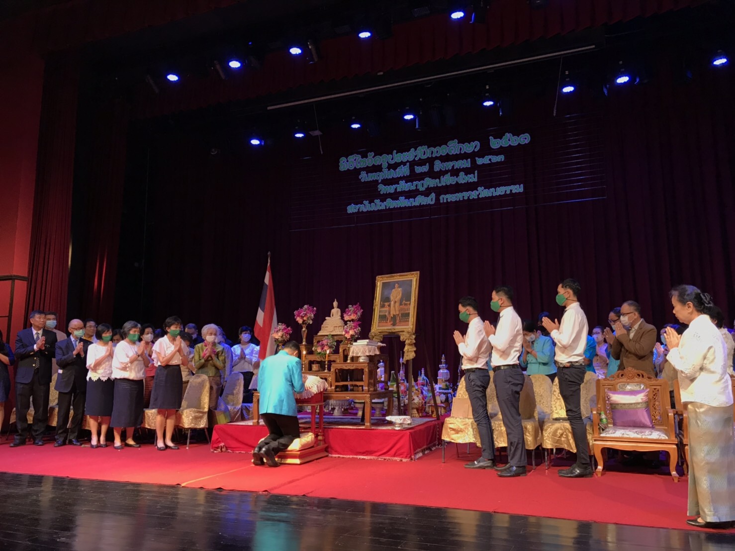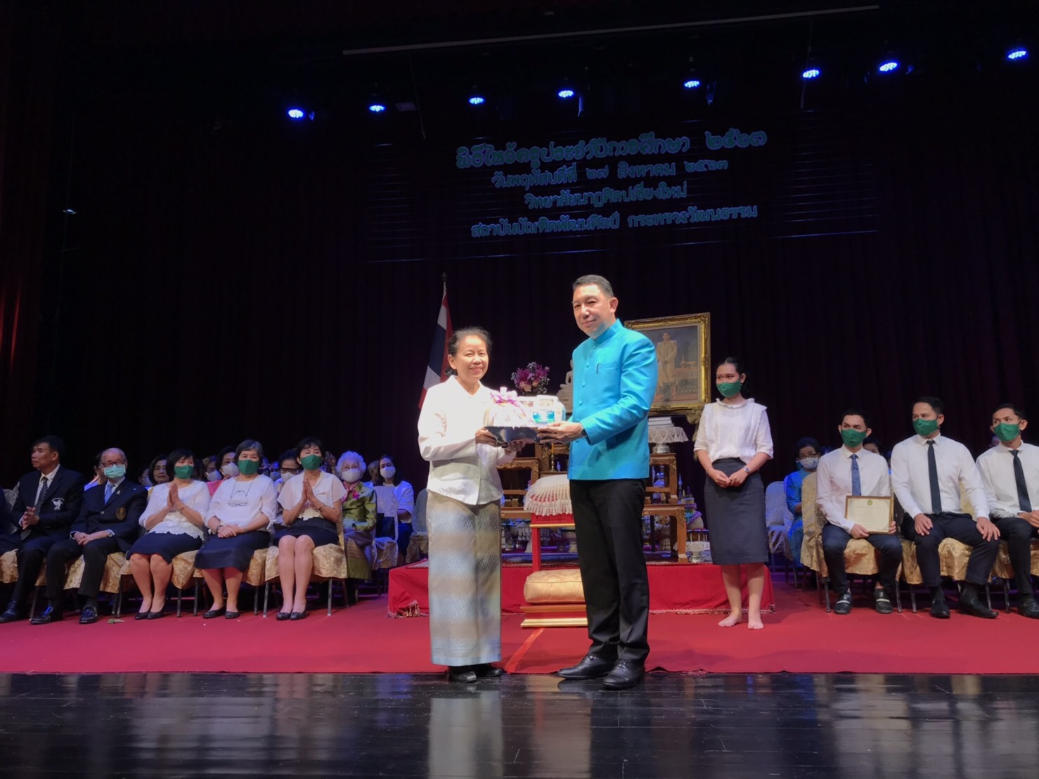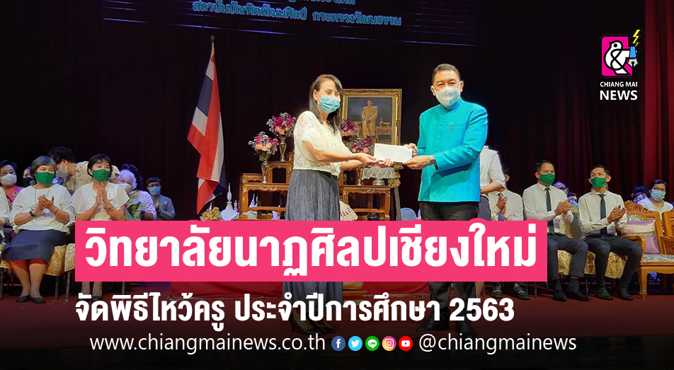 วันพฤหัสบดีที่ 27 สิงหาคม 2563 ณ โรงละครวิทยาลัยนาฏศิลปเชียงใหม่ นายศรัญญู มีทองคำ รองผู้ว่าราชการจังหวัดเชียงใหม่ ให้เกียรติเป็นประธานในพิธีไหว้ครู และมอบทุนการศึกษา ประจำปีการศึกษา 2563 พร้อมด้วย เจ้านายฝ่ายเหนือ นาวาอากาศเอก นรุธ กำเนิดนักตะ ผู้บังคับการกองบิน 41 ประธานคณะกรรมการสถานศึกษา คณะกรรมการสถานศึกษา ผู้มีเกียรติ ผู้ปกครองร่วมพิธี