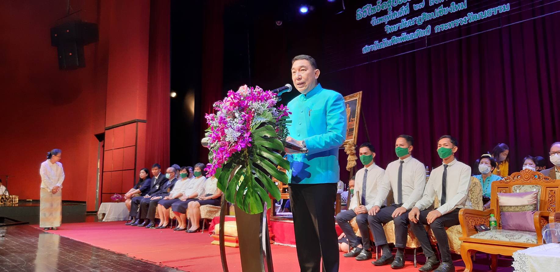 นายศรัญญู มีทองคำ รองผู้ว่าราชการจังหวัดเชียงใหม่ กล่าวให้โอวาทในพิธีไหว้ครู ประเพณีอันดีงาม ประจำชาติไทย ที่แสดงให้เห็นถึง ลักษณะนิสัย และจิตใจของคนในชาติ เป็นผู้ที่มีสัมมาคารวะ อ่อนน้อมถ่อมตน กตัญญูกตเวทิตาต่อผู้มีอุปการคุณ การศึกษาเล่าเรียนวิชาสาขาใด ๆ ก็ตาม จะประสบความสำเร็จได้ ต้องมีครูเป็นผู้ให้การอบรม แนะนำ สั่งสอน ครูจึงเป็นผู้มีพระคุณต่อเรา รองลงมาจากบิดามารดา ขจัดซึ่งอวิชชา จึงขอให้นักเรียน นักศึกษา พึงระลึกนึกถึงคำสวดบูชาครู และคำปฏิญาณตน ที่ได้กล่าวไว้ ในวันนี้ให้มั่นคง
