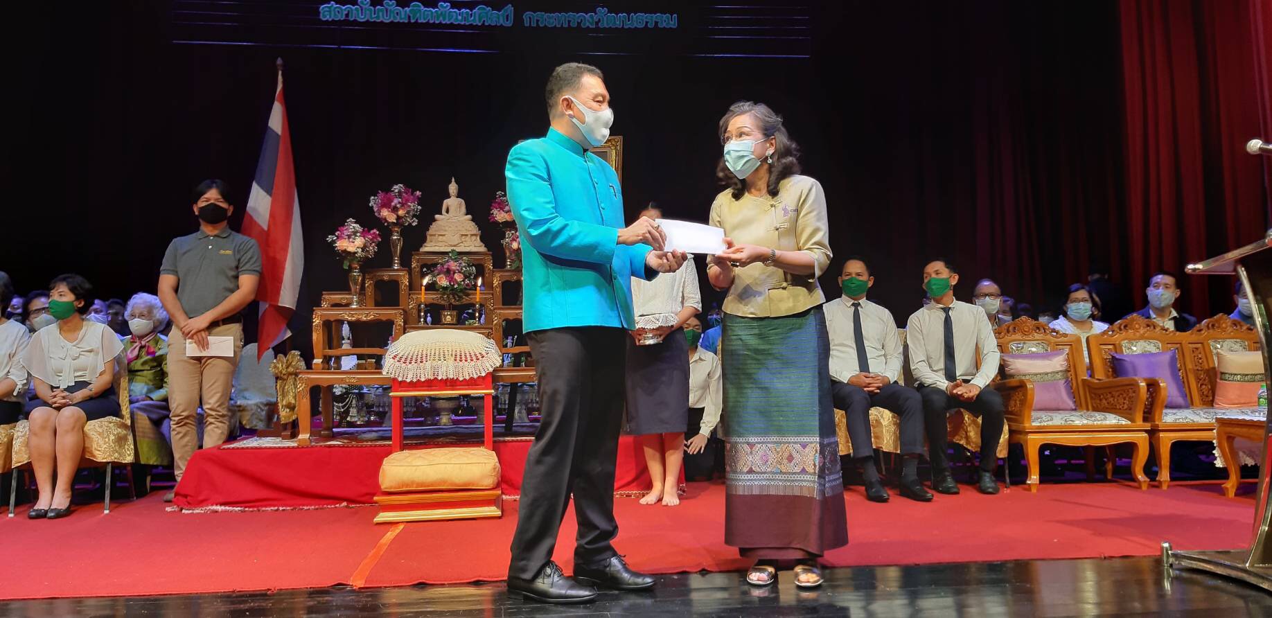 ปีการศึกษา ๒๕๖๓ มีบุคคล องค์กร หน่วยงานต่างๆ ได้ให้การสนับสนุนกิจการของ วิทยาลัยฯ โดยได้บริจาคทุนทรัพย์ สำหรับเป็นทุนการศึกษา และทุนอาหารกลางวัน ให้แก่นักเรียน นักศึกษา จำนวน ๖๙ ราย* รวมเป็นเงินทั้งสิ้น ๕๐๙,๖๐๐ บาท (ห้าแสนเก้าพันหกร้อยบาทถ้วน) ซึ่งคณะกรรมการวิทยาลัยฯ ได้พิจารณาจัดสรรเป็นทุนการศึกษาให้แก่นักเรียน นักศึกษา ที่มีผลการเรียนดี มีความประพฤติเรียบร้อย แต่ขาดแคลนทุนทรัพย์ รวมจำนวนทั้งสิ้น ๑๘๓ ราย ต่อจากนั้นเป็นพิธีไหว้ครูนาฏศิลป์ – ดุริยางคศิลป์ พิธีบรรเลงถวายมือ ภาควิชาดุริยางคศิลป์ ตามลำดับ