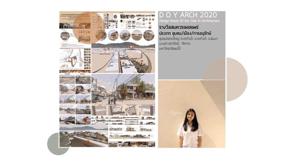 นักศึกษาสาขาวิชาสถาปัตยกรรม คณะสถาปัตยกรรมศาสตร์และการออกแบบสิ่งแวดล้อม มหาวิทยาลัยแม่โจ้ คว้า 4 รางวัลจากการประกวด “โครงการประกวดวิทยานิพนธ์ดีเด่น 2563 (สาขาสถาปัตยกรรมหลัก) Thesis of the years award 2020” โดยทางสมาคมสถาปนิกสยาม ในพระบรมราชูปถัมภ์ ร่วมกับ สภาคณบดีคณะสถาปัตยกรรมศาสตร์แห่งประเทศไทยจัดขึ้น มีสถาบันการศึกษาในเครือข่ายสถาปัตยกรรมศาสตร์ทั่วประเทศ ส่งผลงานเข้าร่วมประกวด 188 ผลงาน และทางคณะสถาปัตยกรรมศาสตร์ฯ มหาวิทยาลัยแม่โจ้ ส่งผลงานของนักศึกษาชั้นปีที่ 5 สาขาวิชาสถาปัตยกรรม เข้าร่วมประกวดจำนวน 10 ผลงาน โดยมหาวิทยาลัยแม่โจ้ สามารถคว้ารางวัลมาได้ถึง 4 รางวัล จาก 3 ผลงาน ในสาขาสถาปัตยกรรมหลัก (ภูมิภาคล้านนา) ดังนี้