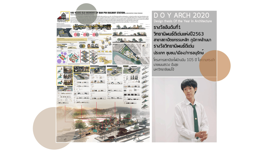 – รางวัลอันดับที่ 1 วิทยานิพนธ์ดีเด่นแห่งปี 2563 สาขาสถาปัตยกรรมหลัก (ภูมิภาคล้านนา) และ รางวัลวิทยานิพนธ์ดีเด่น ประเภท ชุมชน/เมือง/การอนุรักษ์ ได้แก่ “โครงการสถานีรถไฟฟ้าบ้านปิน 105 ปี ในความทรงจำ” ผลงานของ นายแมนสรวง ปันสุข นักศึกษาสาขาวิชาสถาปัตยกรรม ชั้นปีที่ 5