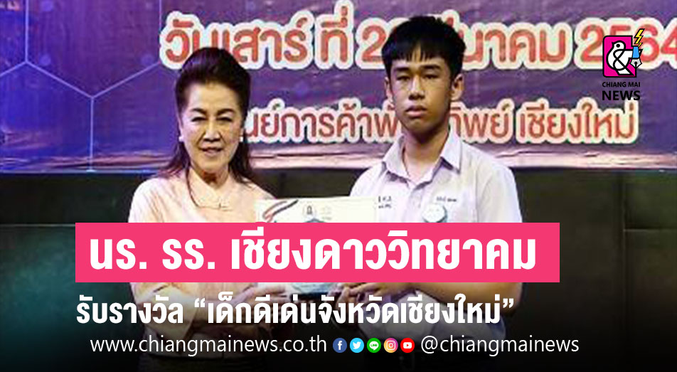 นายพิทักษ์ชน เตชะสา นักเรียนชั้นมัธยมศึกษาปีที่ 3 โรงเรียนเชียงดาววิทยาคม ได้รับโล่ประกาศเกียรติคุณ “เด็กดีเด่นจังหวัดเชียงใหม่” จากองค์การบริหารส่วนจังหวัดเชียงใหม่ เนื่องในวันเด็กแห่งชาติ ประจำปี 2564 ในโครงการมหกรรมการส่งเสริมการเรียนรู้และทักษะชีวิตของเด็กและเยาวชนจังหวัดเชียงใหม่ จัดโดยองค์การบริหารส่วนจังหวัดเชียงใหม่ วันที่ 20 มีนาคม 2564 ณ ห้องพันธุ์ทิพย์ฮอล์ ชั้น 3 ศูนย์การค้าพันธุ์ทิพย์ เชียงใหม่