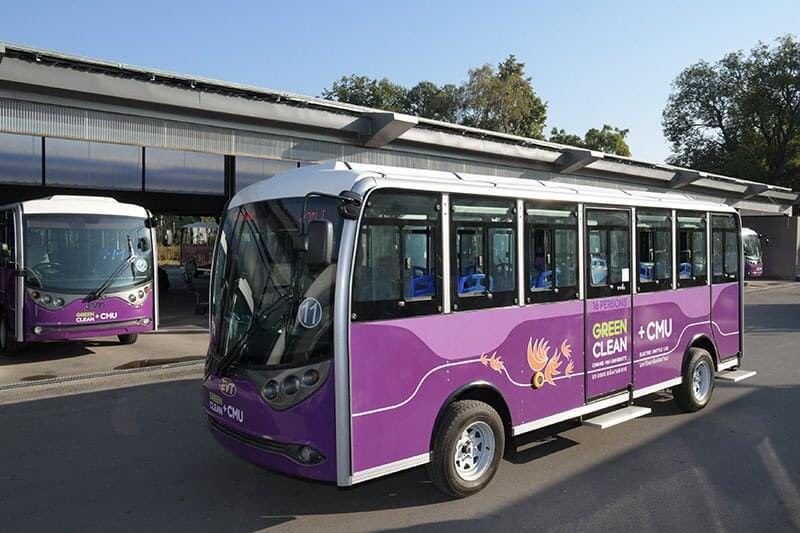 ด้านระบบขนส่งมวลชนมหาวิทยาลัยเชียงใหม่ การสัญจรภายในมหาวิทยาลัย มีรถไฟฟ้าให้บริการเชื่อมโยงการเดินทางที่ครอบคลุมทุกพื้นที่ของมหาวิทยาลัย ให้มีความสะดวก ปลอดภัย และเป็นมิตรกับสิ่งแวดล้อม ทั้งฝั่งสวนสักภายในมหาวิทยาลัยเชียงใหม่ ฝั่งสวนดอก สาย มช.-สวนดอก และ ฝั่งแม่เหียะ สาย มช.-แม่เหียะ นักศึกษาสามารถติดตามตำแหน่งรถ และที่ว่างบนรถแต่ละคัน แบบ Realtime ผ่าน CMU Mobile Application