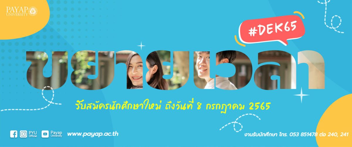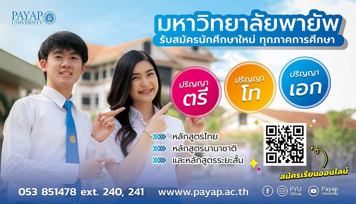 มหาวิทยาลัยพายัพ ขยายเวลารับสมัครนักศึกษาใหม่ ประจำปีการศึกษา 2565 หลักสูตรไทย ตั้งแต่วันนี้ – 8 กรกฎาคม 2565 เพื่อขยายโอกาสให้นักศึกษาได้ตัดสินใจเลือกเรียนต่อในระดับอุดมศึกษา ซึ่งหลักสูตรต่าง ๆ ของมหาวิทยาลัยพายัพ ในปีการศึกษา 2565 นี้ มีการปรับปรุงหลักสูตรใหม่ และ เปิดสอนหลักสูตรใหม่ ๆ เพื่อตอบสนองความต้องการของผู้เรียนให้สอดคล้องกับการเปลี่ยนแปลงของโลกในปัจจุบัน สำหรับสาขาวิชาที่เปิดรับ ประกอบด้วย ภาษาไทยเพื่อการสื่อสารสำหรับชาวต่างประเทศ ภาษาอังกฤษ ภาษาและวัฒนธรรมญี่ปุ่น ภาษาจีนธุรกิจ จิตวิทยา นิเทศศาสตร์ การตลาดดิจิทัล การจัดการโรงแรม การจัดการและการเป็นผู้ประกอบการ การจัดการนวัตกรรมธุรกิจอาหาร วิศวกรรมซอฟต์แวร์ นิติศาสตร์ การบัญชี การบัญชี ภาคพิเศษ 2 ปี ธุรกิจดิจิทัลและเทคโนโลยีทางการเงิน และ การบริหารการเงินและการลงทุน