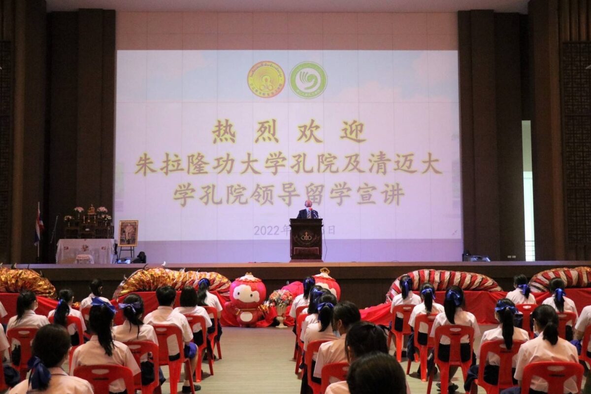 คุณไพฑูรย์ ตระการศิรินนท์ รักษาการประธานอำนวยการมูลนิธิช่องฟ้าซินเซิงวาณิชบำรุงวิทยา และประธานกรรมการบริหารโรงเรียน พร้อมคณะผู้บริหาร ให้การต้อนรับคุณ Han Shenglong ผู้อำนวยการสถาบันขงจื่อแห่งจุฬาลงกรณ์มหาวิทยาลัย และคุณ Lian Chen ผู้อำนวยการสถาบันขงจื่อ มหาวิทยาลัยเชียงใหม่ พร้อมคณะ ในโอกาสแนะแนวการศึกษาต่อในประเทศจีน พร้อมให้คำแนะนำเกี่ยวกับการยื่นขอทุนการศึกษาต่อในมหาวิทยาลัยปักกิ่ง ให้กับนักเรียนชั้นมัธยมศึกษาตอนปลายที่มีความสนใจศึกษาต่อในประเทศจีน เมื่อวันที่ 25 กรกฎาคม 2565 ณ หอประชุม อาคารฉงซิน