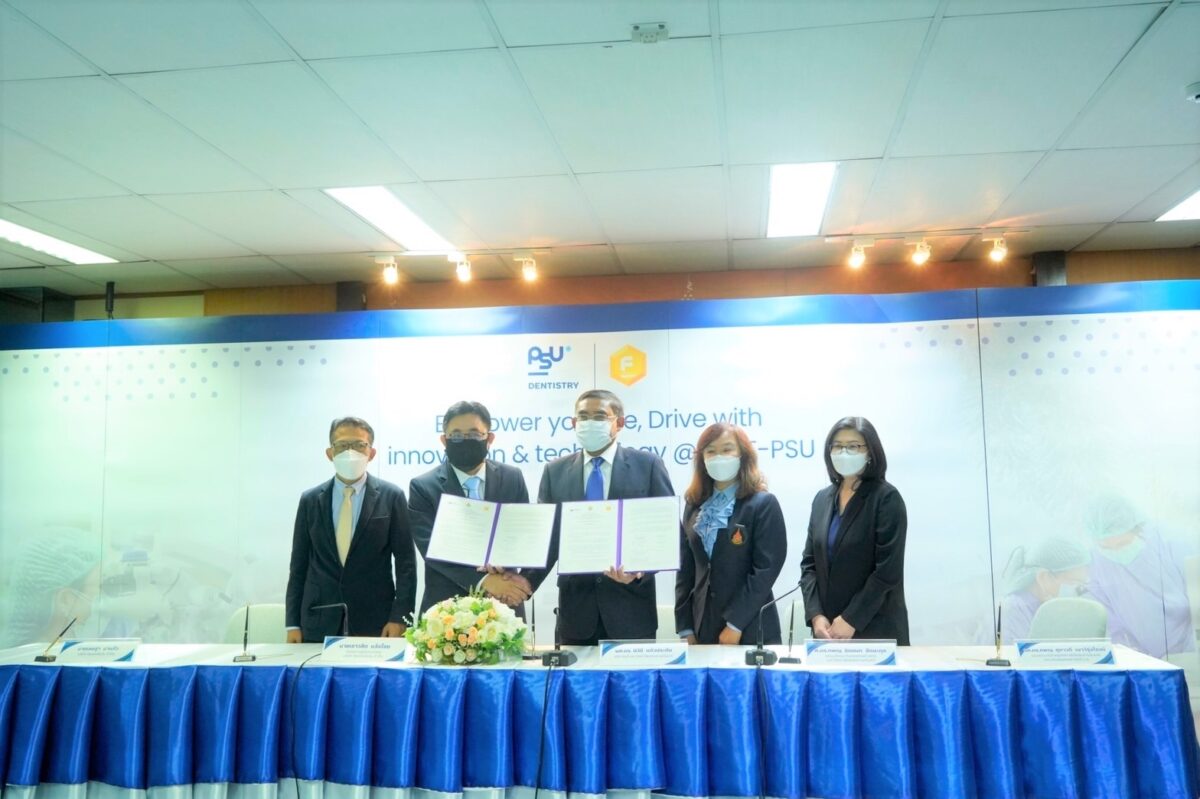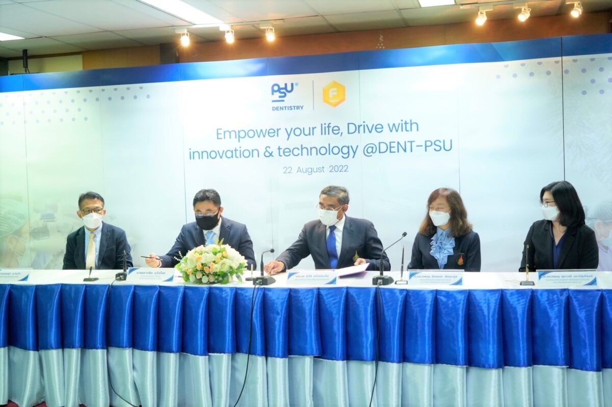 มหาวิทยาลัยสงขลานครินทร์ โดยคณะทันตแพทยศาสตร์ ร่วมกับ บริษัท ฟินเทคอินโน จำกัด ลงนามบันทึกข้อตกลงความร่วมมือโครงการพัฒนาเทคโนโลยีดิจิทัลทางด้านทันตกรรม (Empower your life, Drive with innovation & technology @DENT-PSU) “นวัตกรรมและเทคโนโลยีเพื่อชีวิตที่ดีกว่า @DENT-PSU” โดยมี ผศ. ดร.นิวัติ แก้วประดับ อธิการบดีมหาวิทยาลัยสงขลานครินทร์ เป็นประธานและร่วมลงนาม พร้อมด้วย ศ. ดร.ทพญ. ชิดชนก ลีธนะกุล คณบดีคณะทันตแพทยศาสตร์ และ นายเชาวลิต แจ้งไชย บริษัท ฟินเทคอินโน จำกัด และมีผู้บริหารทั้งสองหน่วยงาน คณาจารย์ บุคลากร นักศึกษา และสื่อมวลชนเข้าร่วมงาน ณ ห้องประชุมใหญ่ ชั้น 7 คณะทันตแพทยศาสตร์ มหาวิทยาลัยสงขลานครินทร์ วิทยาเขตหาดใหญ่ เมื่อวันที่ 22 ส.ค. 65