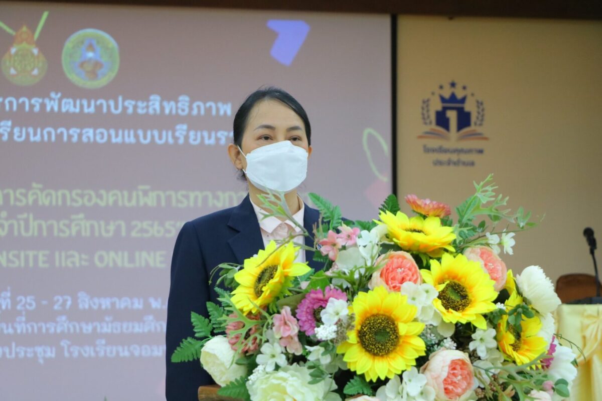 วันพฤหัสบดีที่ 25 สิงหาคม พ.ศ.2565 สำนักงานเขตพื้นที่การศึกษามัธยมศึกษาเชียงใหม่ ร่วมกับ โรงเรียนจอมทอง จัดการอบรมเชิงปฏิบัติการ โครงการพัฒนาประสิทธิภาพการจัดการสอนแบบเรียนรวม กิจกรรม”ผู้ดำเนินการคัดกรองคนพิการทางการศึกษา ประจำปีการศึกษา 2565″