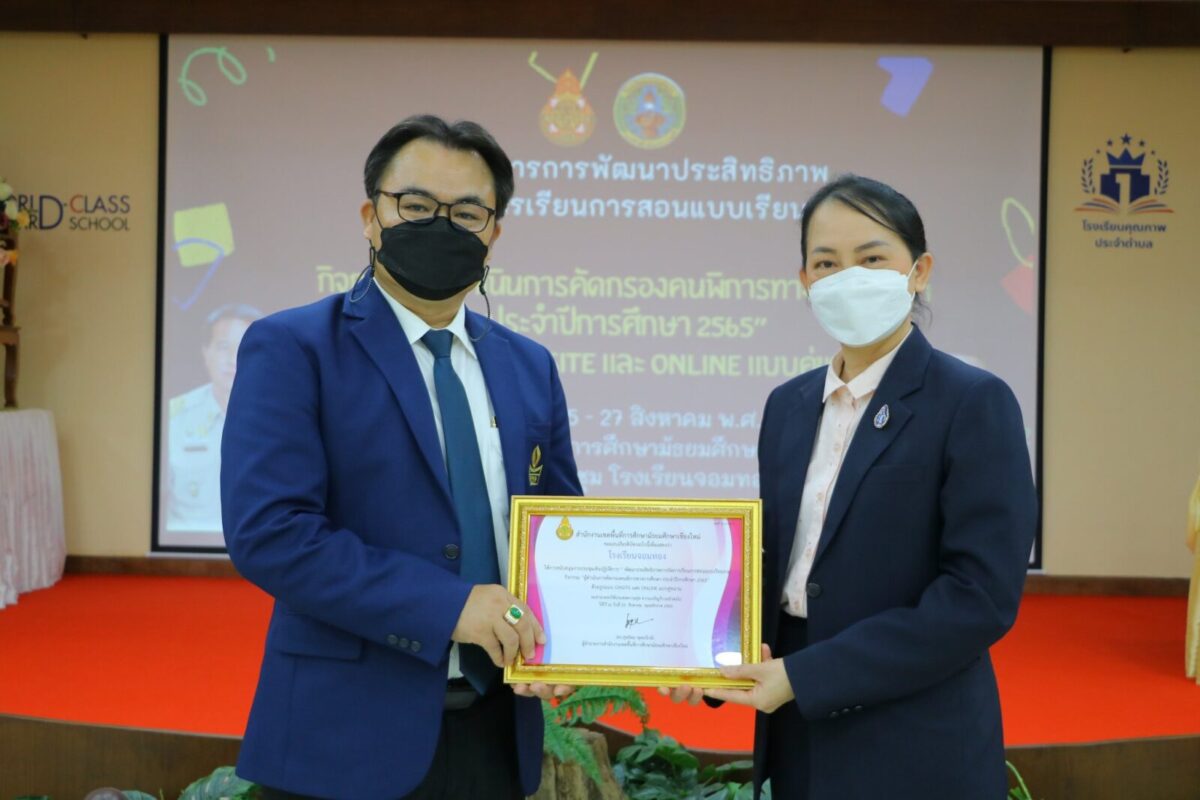 สพม.เชียงใหม่ ร่วมกับ โรงเรียนจอมทอง จัดอบรมเชิงปฏิบัติการ โครงการพัฒนาประสิทธิภาพการจัดการสอนแบบเรียนรวม กิจกรรม”ผู้ดำเนินการคัดกรองคนพิการทางการศึกษา ประจำปีการศึกษา 2565″