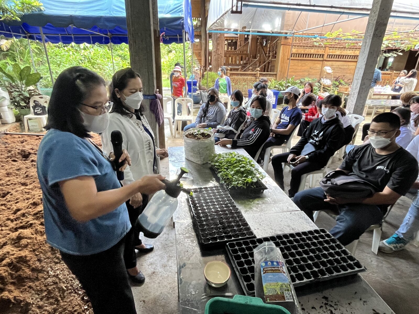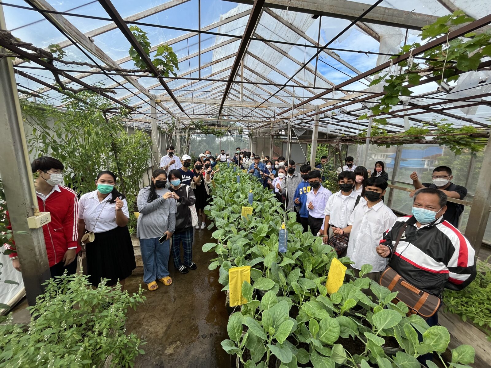 นศ.กศน.อ.หางดง และ นศ.มช. ศึกษาดูงานแปลงปลูกผักลอยฟ้า ปลูกบนอาคารสูง 3 ชั้น ที่ “DDฟาร์ม” ของอดีตกำนันดี และดูงานบ้านกำนันอำพร สถานที่ปลูกผักสวนครัว และปลูกผักไฮโดรโปนิกส์ ศูนย์ส่งเสริมเรียนรู้ตามแนวปรัชญาเศรษฐกิจพอเพียง