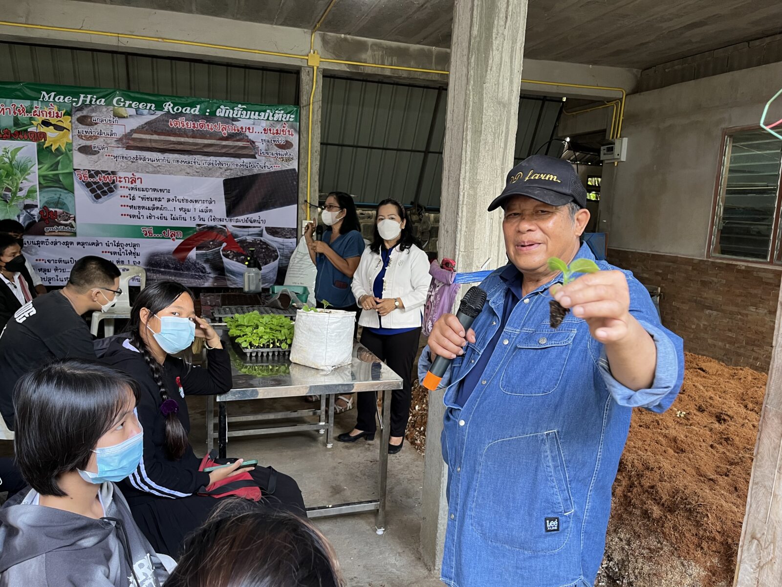 วันเดียวกัน นายทัพไท หน่อสุวรรณ นักวิทยาศาสตร์เกษตรมหาวิทยาลัยเชียงใหม่ (มช.) นำนักศึกษาคณะเกษตรศาสตร์ มช. จำนวน 25 คน ลงพื้นที่ศึกษาดูงานที่ “DDฟาร์ม” และสถานที่ปลูกผักสวนครัวและปลูกผักไฮโดรโปนิกส์ ศูนย์ส่งเสริมเรียนรู้ตามแนวปรัชญาเศรษฐกิจพอเพียงดังกล่าว
