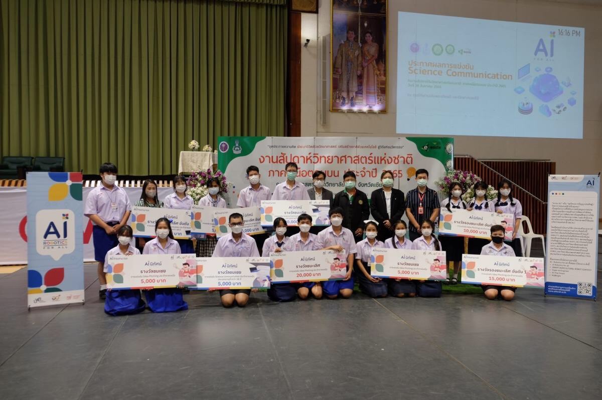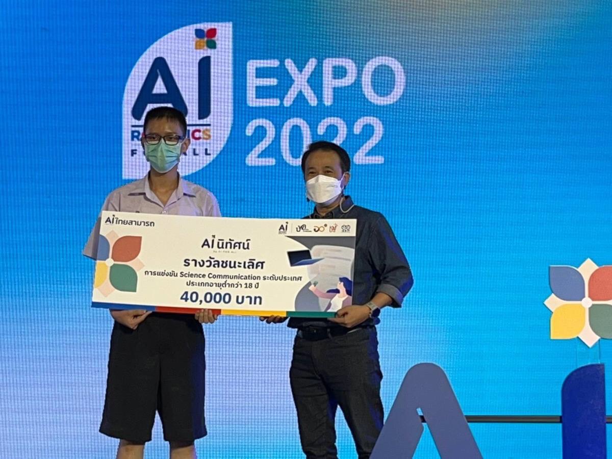 นายโชติวัฒน์ ตั้งสถาพร นักเรียนชั้นมัธยมศึกษาปีที่ 4/2 ได้รับรางวัลชนะเลิศ เงินรางวัล 40,000 บาท จากกิจกรรมการแข่งขัน Science Communication ระดับประเทศ ประเภทอายุต่ำกว่า 18 ปี ในการพูดเกี่ยวกับหัวข้อ “ความเข้าใจผิดที่เกี่ยวกับ AI” ที่ทางโครงการได้กำหนด เพื่อให้สังคมได้ตระหนัก เสริมสร้างความเข้าใจ ตลอดจนให้ความรู้แก่ผู้รับชม ในงาน AI Robotics for All Expo 2022 วันเสาร์ที่ 17 กันยายน 2565 เวลา 14.00 – 16.00 น. ณ ลานชั้น 1 ห้างสรรพสินค้าเซนทรัลพลาซ่าพระราม 9 กรุงเทพมหานคร และได้รับรางวัลชนะเลิศ เงินรางวัล 20,000 บาท รับสิทธิ์เข้าร่วมการแข่งขันในระดับประเทศ จากกิจกรรมการแข่งขัน Science Communication ประจำภาคเหนือ ประเภทอายุต่ำกว่า 18 ปี ในการพูดเกี่ยวกับหัวข้อ “AI กับข่าวสารในช่วงเวลานั้น ๆ” ในงานสัปดาห์วิทยาศาสตร์แห่งชาติ ภาคเหนือตอนบน ประจำปี 2565 วันศุกร์ที่ 19 สิงหาคม 2565 ณ คณะวิทยาศาสตร์ มหาวิทยาลัยแม่โจ้ จังหวัดเชียงใหม่
